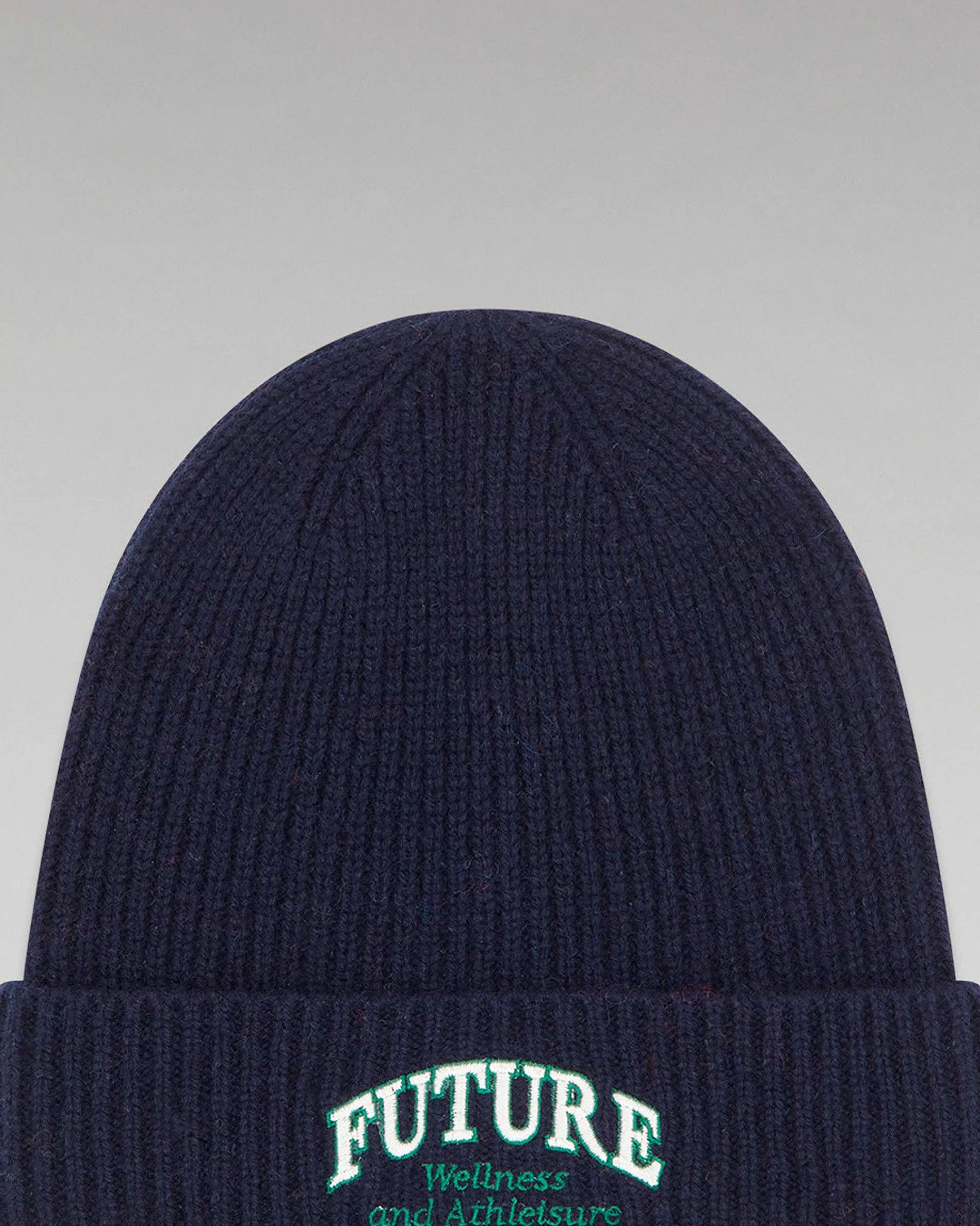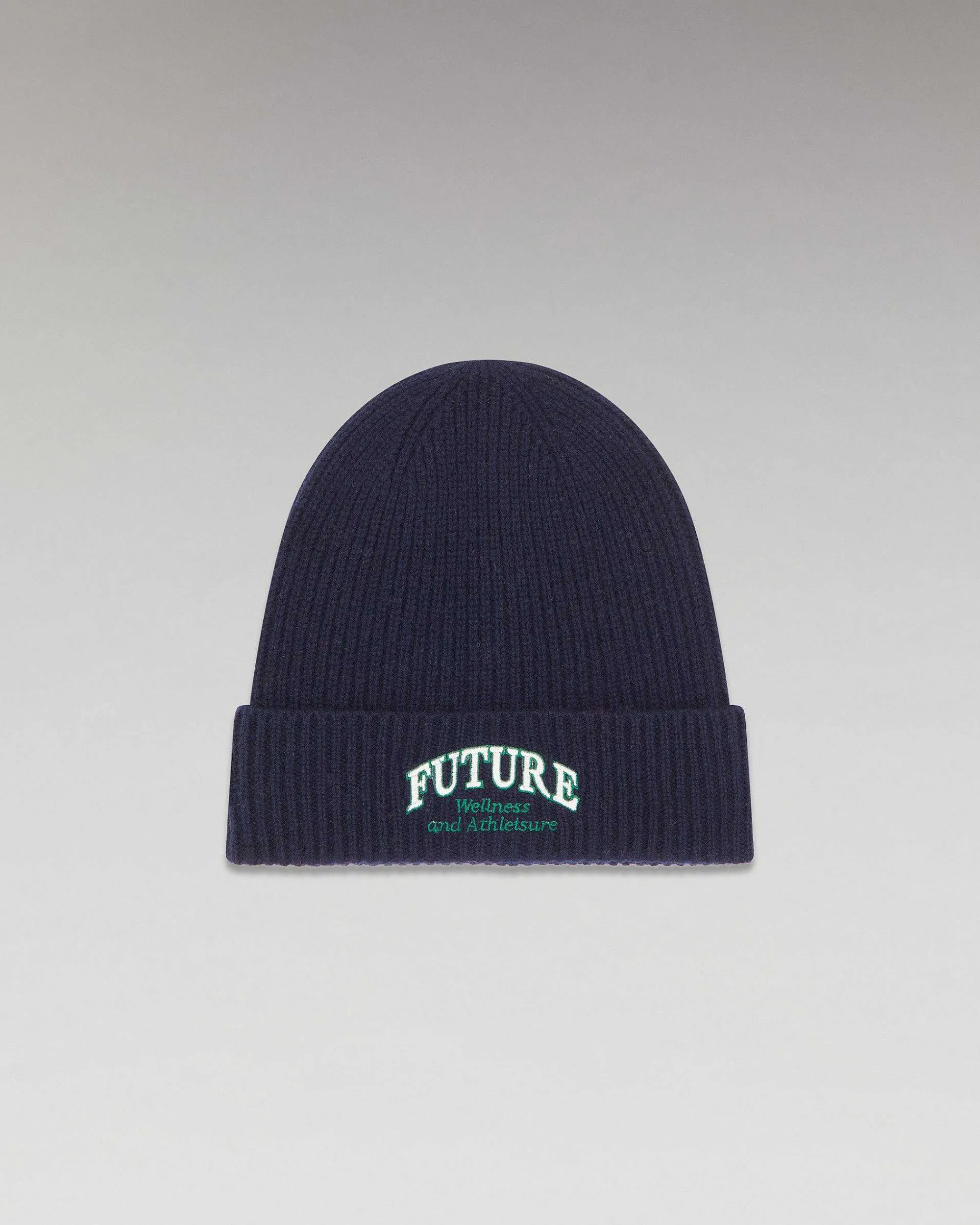 Confectionné En Cachemire 6 Fils, Ce Bonnet Côtelé Infiniment Doux Incarne Une Allure Sporty-Chic. À Revers, Il Révèle Une Broderie « Future » À L’Avant, Fusionnant L’Esprit Collège Et L’Élégance Futuriste. Accessoire Indispensable De Votre Vestiaire De Saison, Il Ponctuera Votre Silhouette Décontractée.