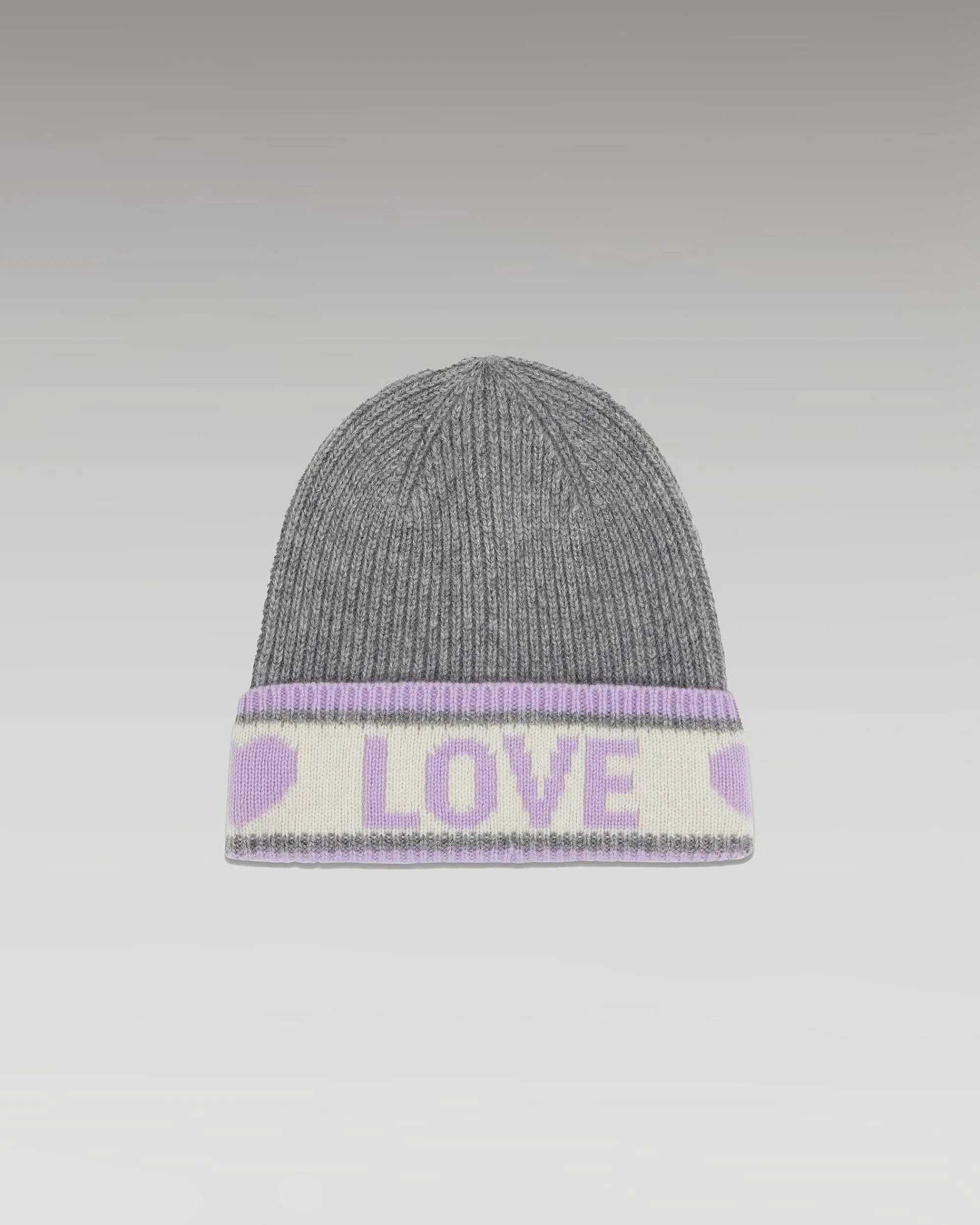 Embrassez Le Futur Avec Ce Bonnet À Revers, Côtelé Et Infiniment Doux. Confectionné En Cachemire 6 Fils, Il Révèle Des Bandes Contrastées Ornées De Cœurs Et D’Une Déclaration « Love ». À La Fois Chic Et Casual, Il Vient Ponctuer Votre Silhouette De Saison Avec Éclat Et Audace.