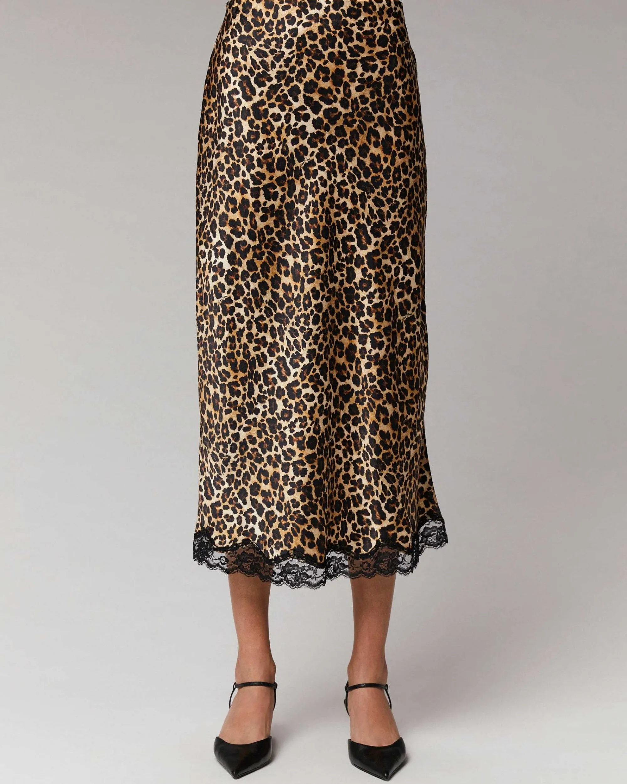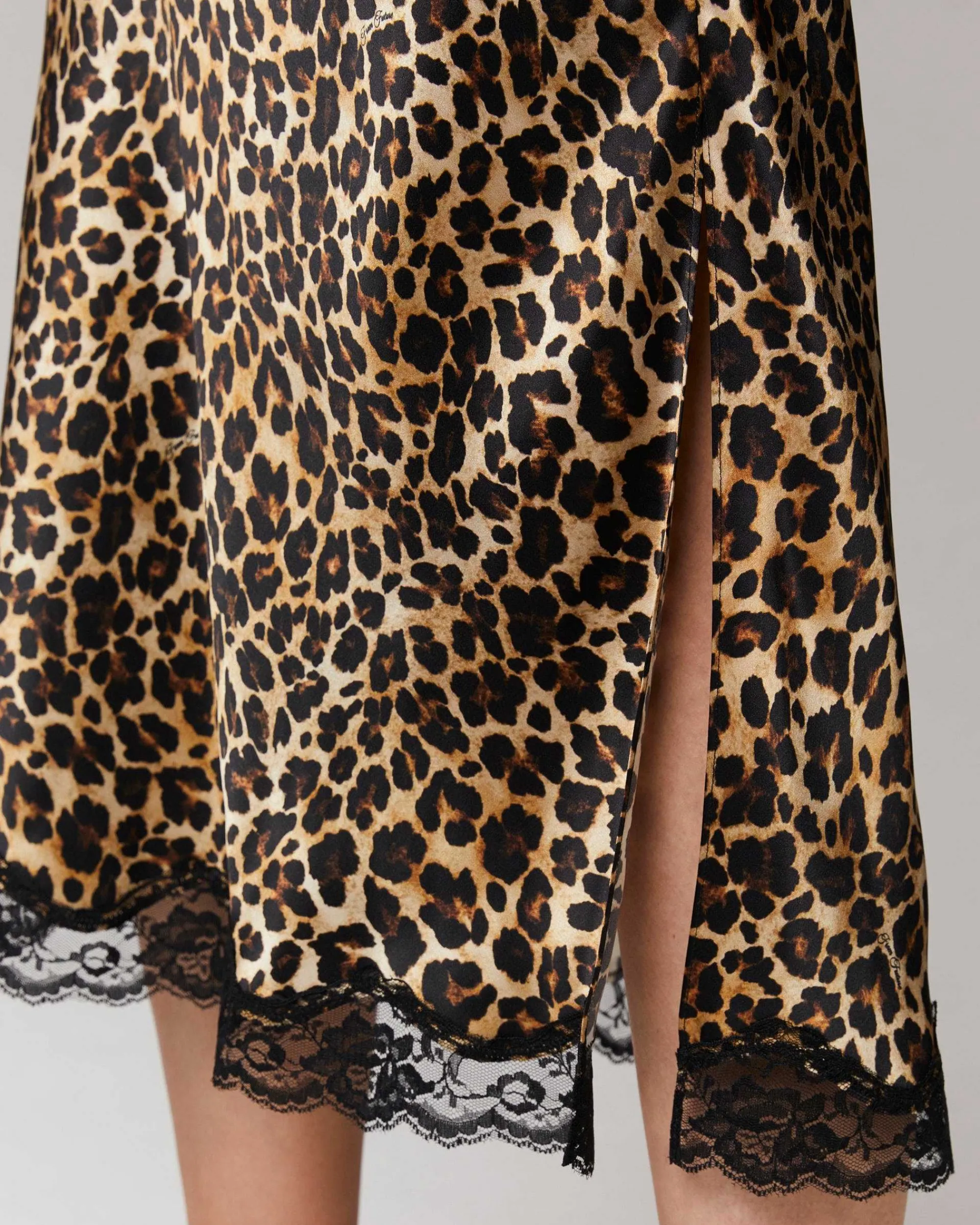 Fusion Audacieuse De Motifs Sauvages Et D’Élégance Futuriste, Cette Jupe Mi-Longue Vous Propulse Vers Des Horizons Inexplorés De Style. Confectionnée En Satin De Soie Léger Et Soyeux, Elle Se Pare D’Un Imprimé Léopard, D’Une Fente Sur Les Côtés Et De Bords En Dentelle. Élastiquée À La Taille, Elle Dévoile Une Silhouette Ajustée En Toute Fluidité. À Accessoiriser Selon Vos Envies, Elle Se Porte Sur Une Chemise Satinée Ou Un Top En Maille.