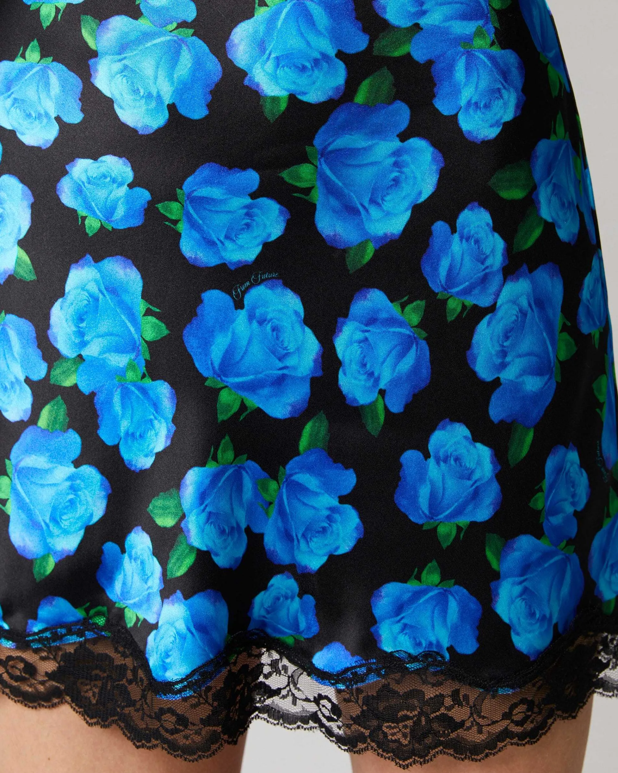 Un Vent De Fraîcheur Souffle Sur Votre Vestiaire Futuriste Avec Cette Mini Jupe Confectionnée En Satin De Soie Léger Et Soyeux. Dévoilant Une Taille Élastiquée Et Une Silhouette Ajustée, Elle Est Ornée D’Un Imprimé Fleuri Et De Bords En Dentelle. Fluide Et Élégante, Elle S’Associe Facilement À Un Top Satiné Et Une Paire D’Escarpins Pour Un Look Chic.