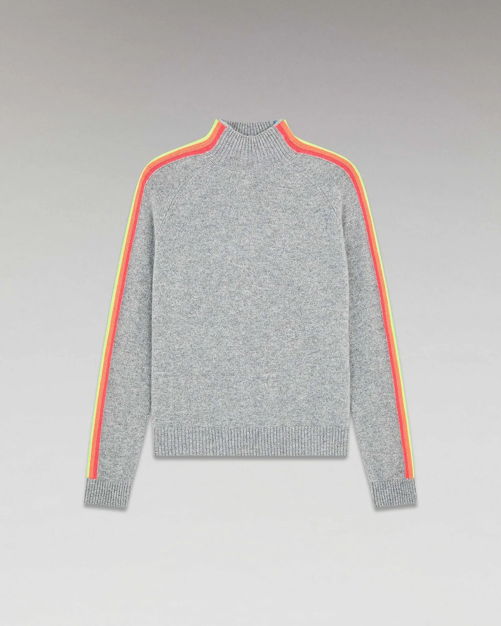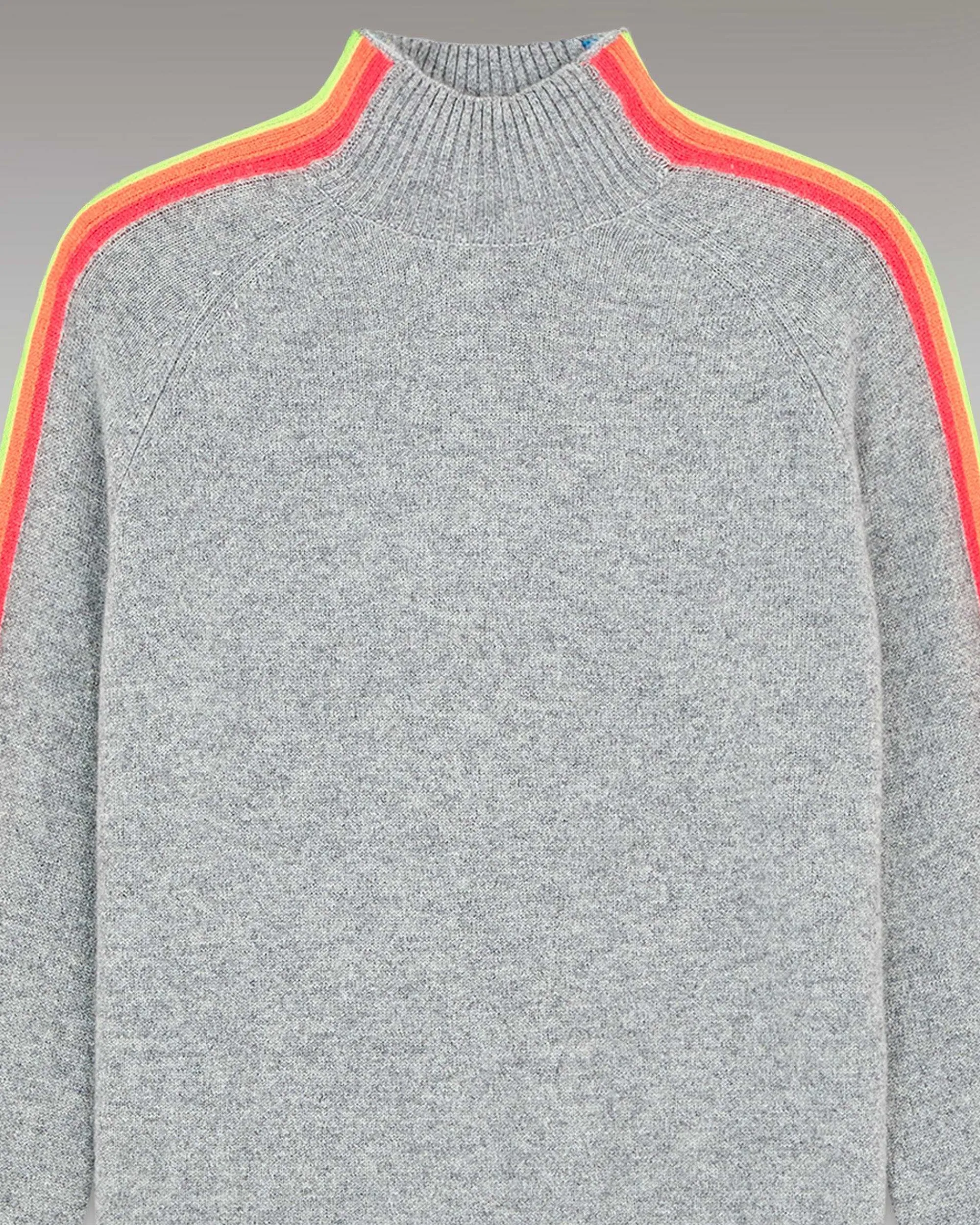 Douceur Et Légèreté Pour Ce Pull Court Confectionné En Cachemire 2 Fils Qui Capture L’Essence Du Style Futuriste. Muni D’Un Col Montant Et De Bords Côtelés, Il Se Twiste De Bandes Aux Couleurs Vibrantes Le Long Des Manches. Idéal Pour Structurer La Silhouette Avec Audace, Mixez-Le À Un Jean Casual Ou Une Jupe Fluide.