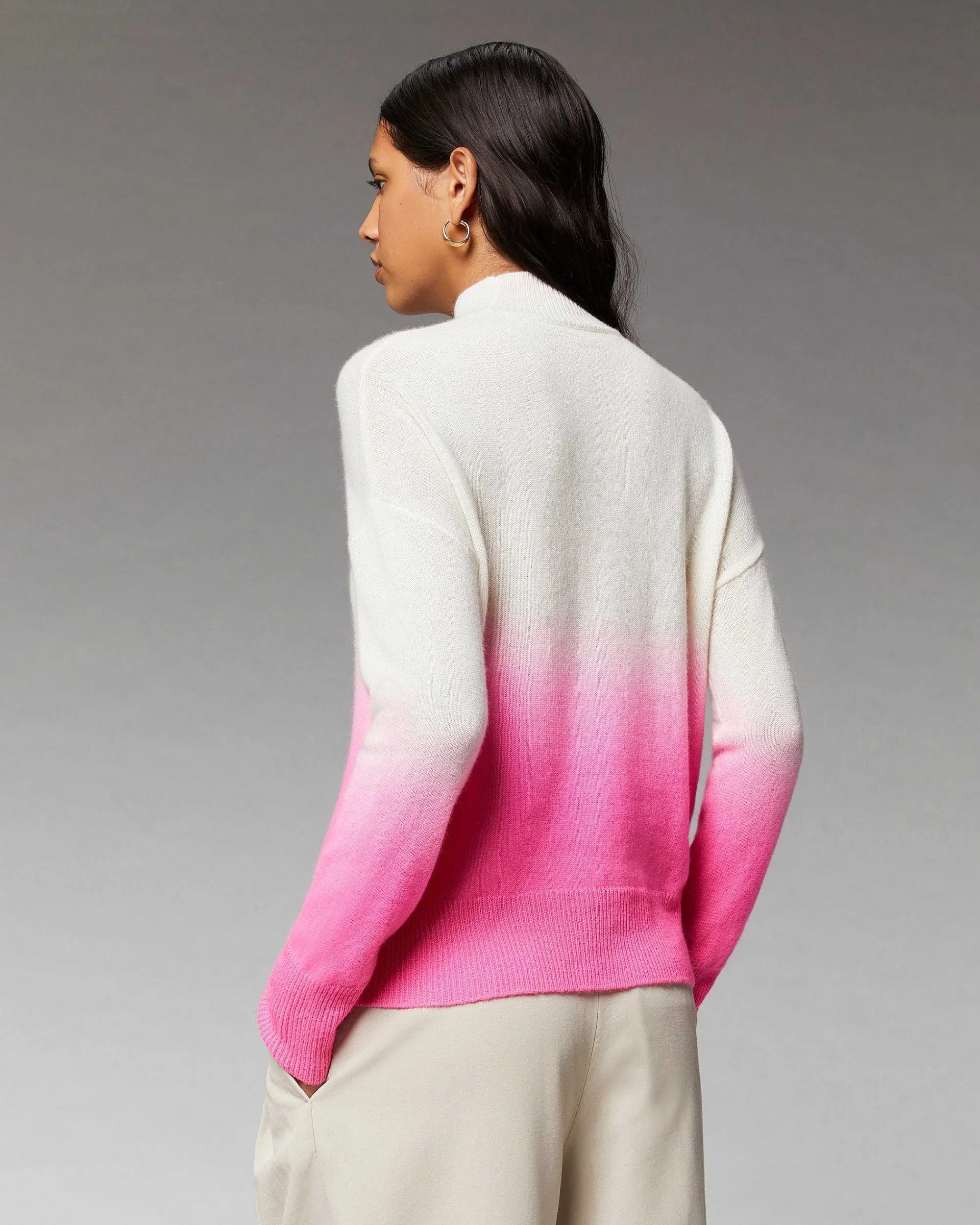 Laissez-Vous Emporter Dans Un Voyage Cosmique Vers Des Horizons Futuristes. Un Dégradé Dip Dye Se Dévoile Sur Ce Pull Oversize En Maille Douce 100% Cachemire, Muni D’Un Col Montant Et De Manches Longues.