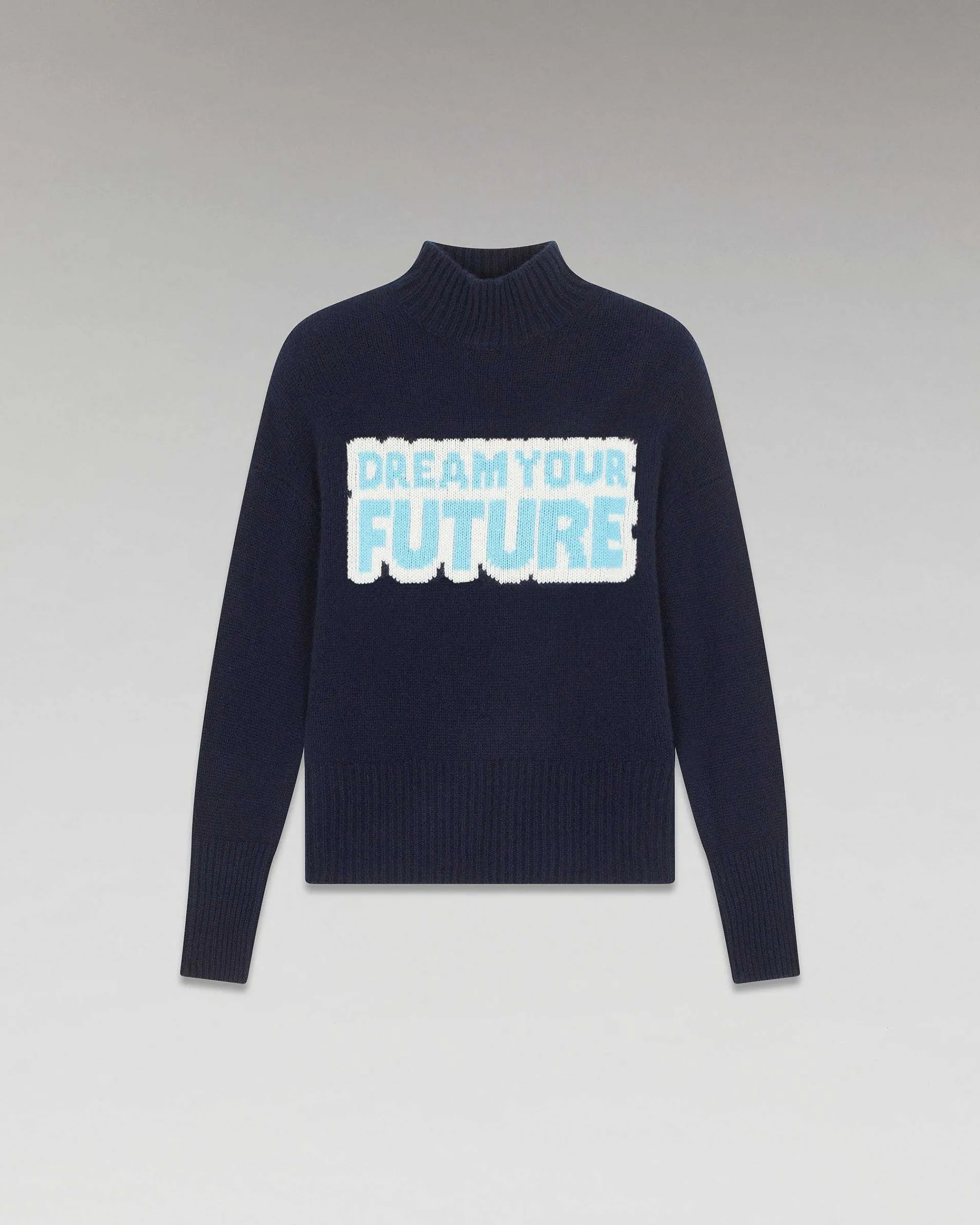 Confectionné En Cachemire 6 Fils, Ce Pull Oversize Vous Transporte Vers Un Futur Audacieux. Muni D’Un Col Montant, De Manches Longues Et De Bords Côtelés, Il Dévoile Un Message Contrasté « Dream Your Future » À L’Avant. Infiniment Doux, Complétez Votre Look Casual Avec Une Chemise, Un Pantalon Ample Et Un Bonnet.