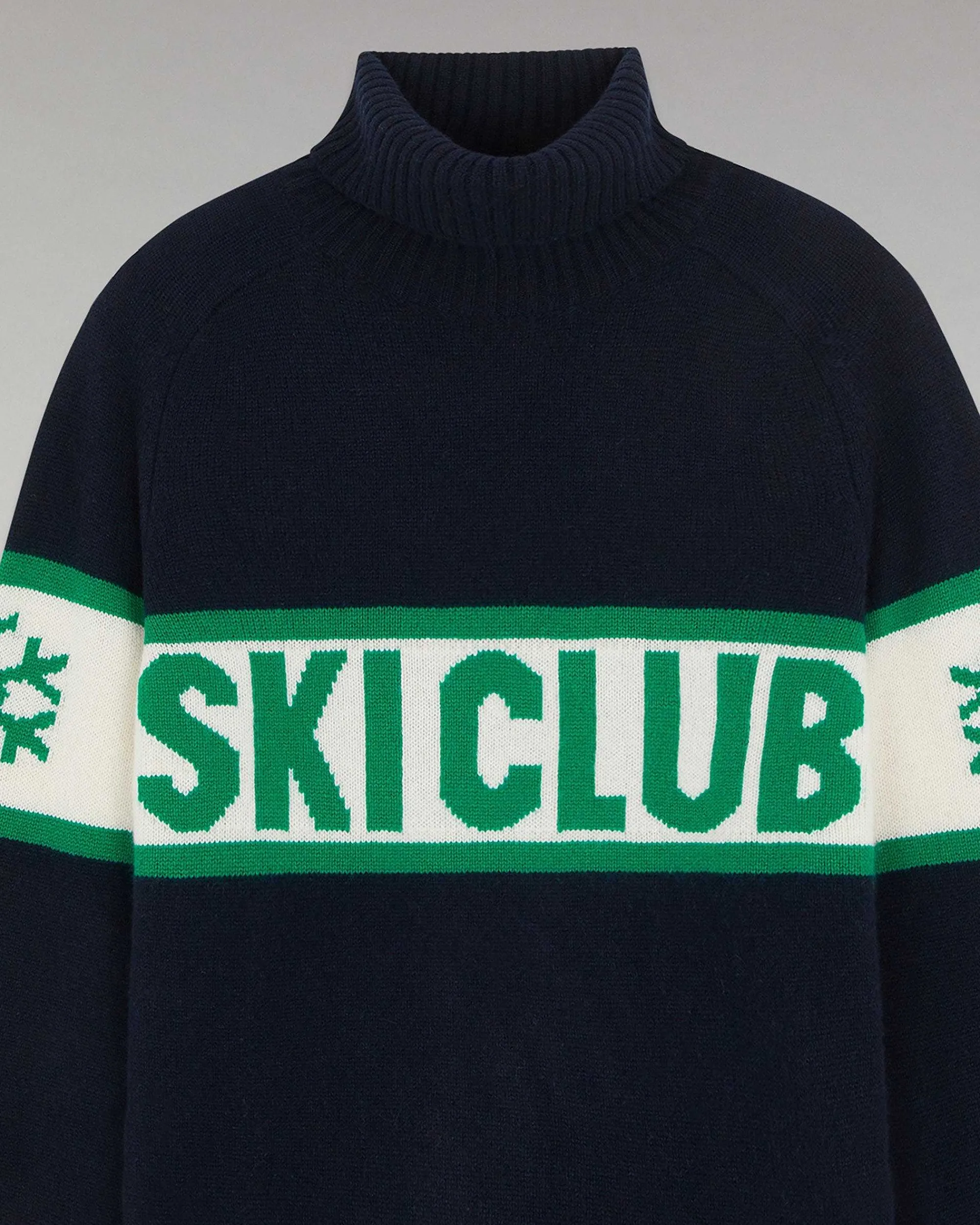 Révélez Votre Allure Cosmique Sur Les Pistes Enneigées ! Confectionné En Cachemire 4 Fils, Ce Pull Oversize Dévoile Un Col Roulé, Des Manches Longues Et Des Bords Côtelés. Infiniment Doux, Il Révèle Des Bandes Constrastées Ornées D’Un Message « Ski Club » Et De Flocons De Neige. Facile À Mixer, Complétez Votre Look Avec Un Pantalon Décontracté Et Un Bonnet Côtelé.
