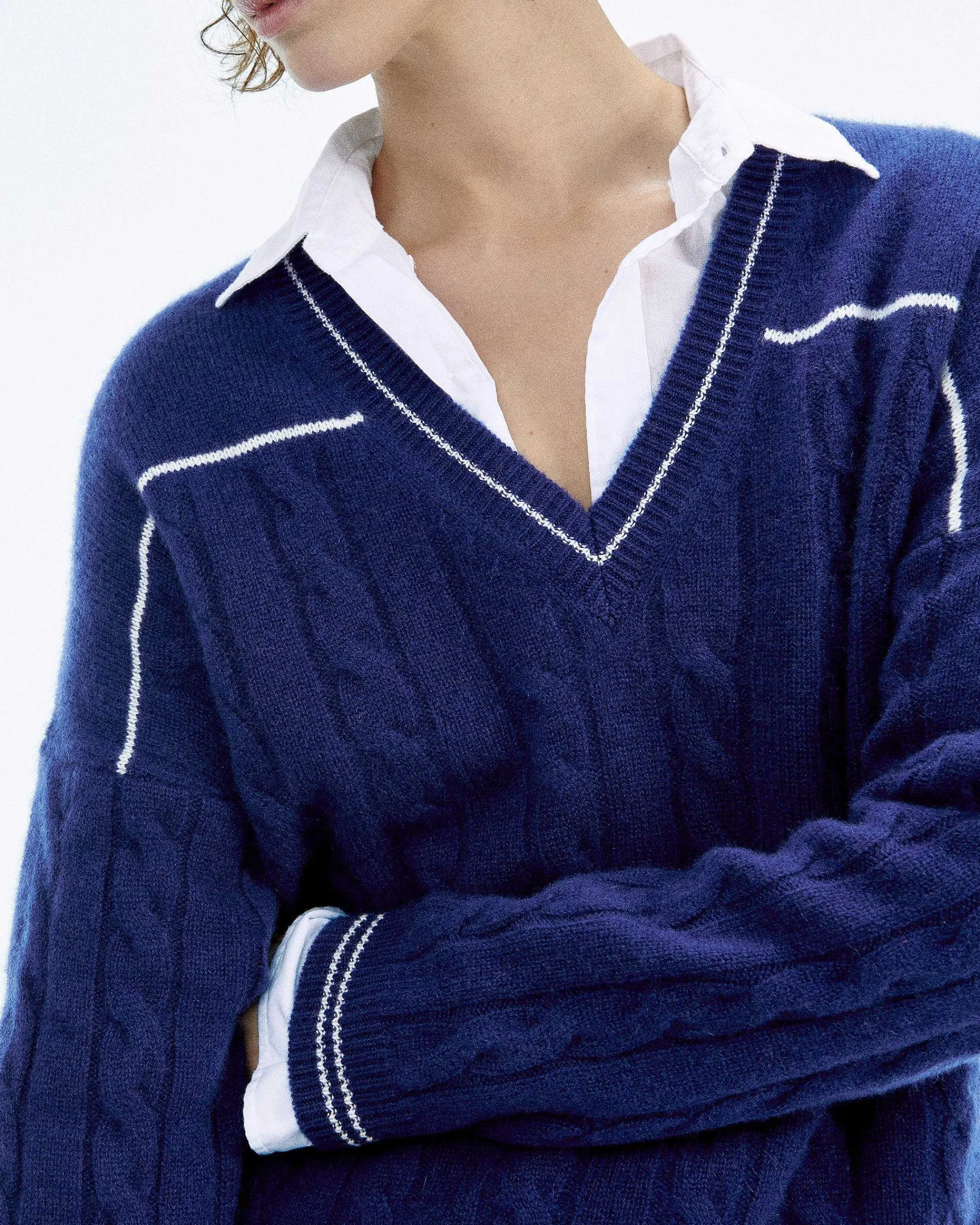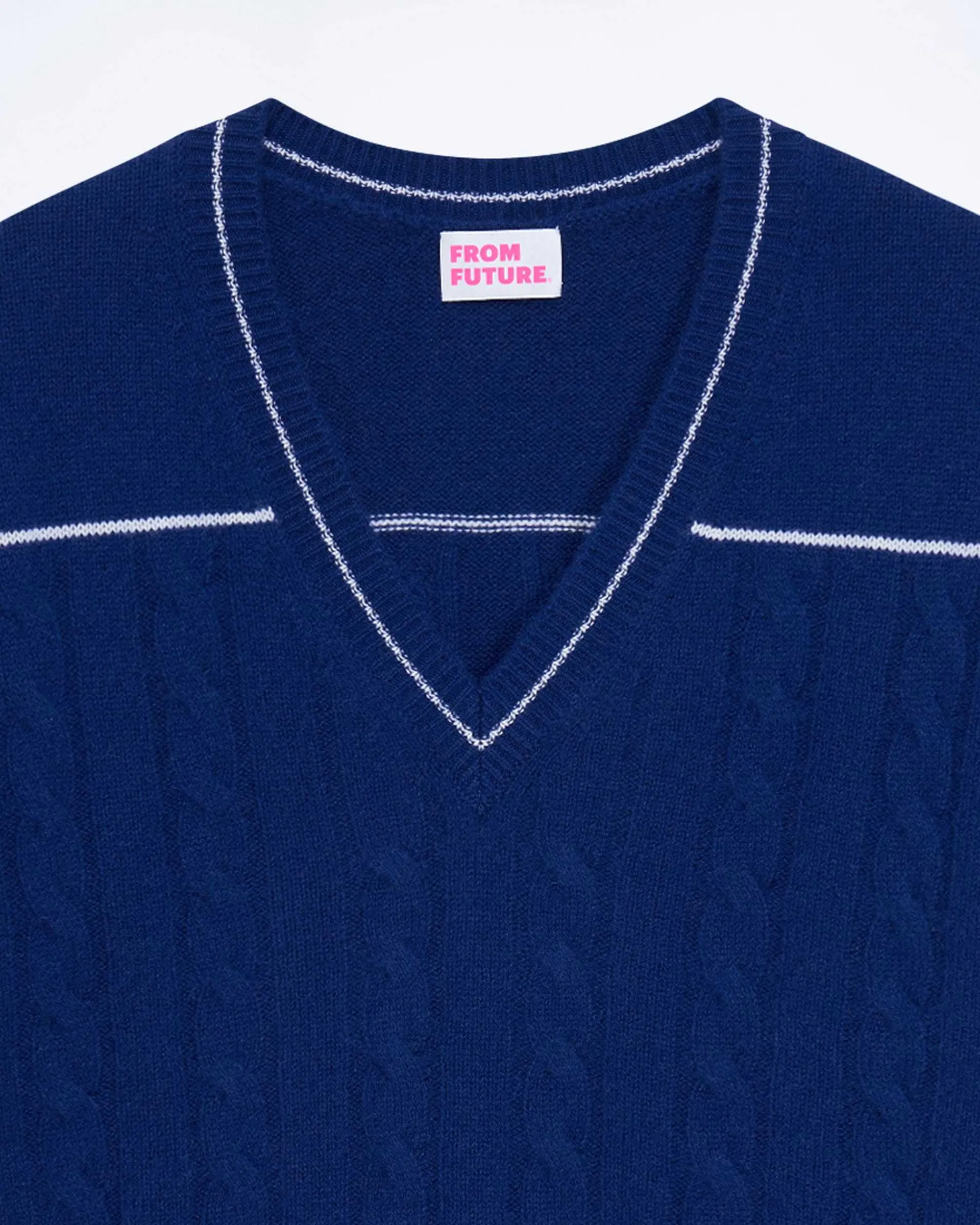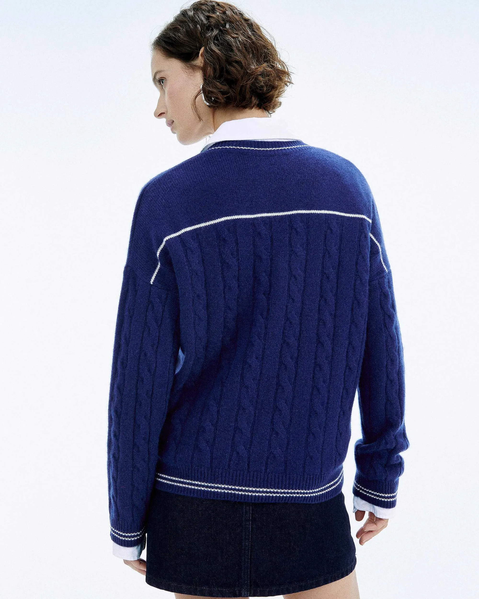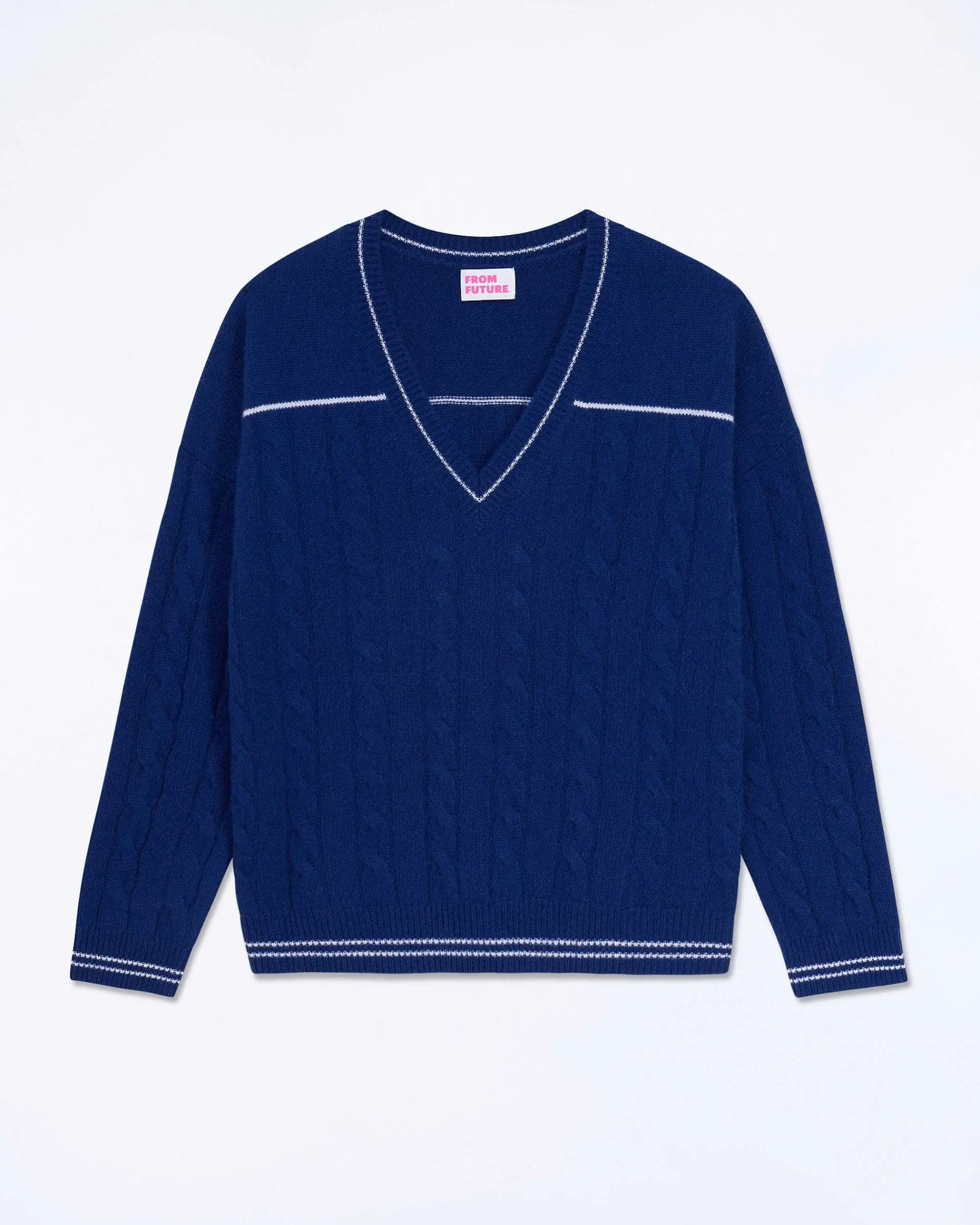 Incarnant L’Élégance Futuriste, Ce Pull Oversize Confectionné En Cachemire 4 Fils Séduit Par Ses Détails Audacieux Inspirés Du Style Collège. Muni De Manches Longues Et De Bords Côtelés, Il Arbore Un Col V, Des Liserés Contrastés Et Une Broderie « Future » Sur La Poitrine. Idéal Pour Structurer Votre Allure, Il S’Associe Aisément À Un Jean Ample Ou Un Jogging Droit.