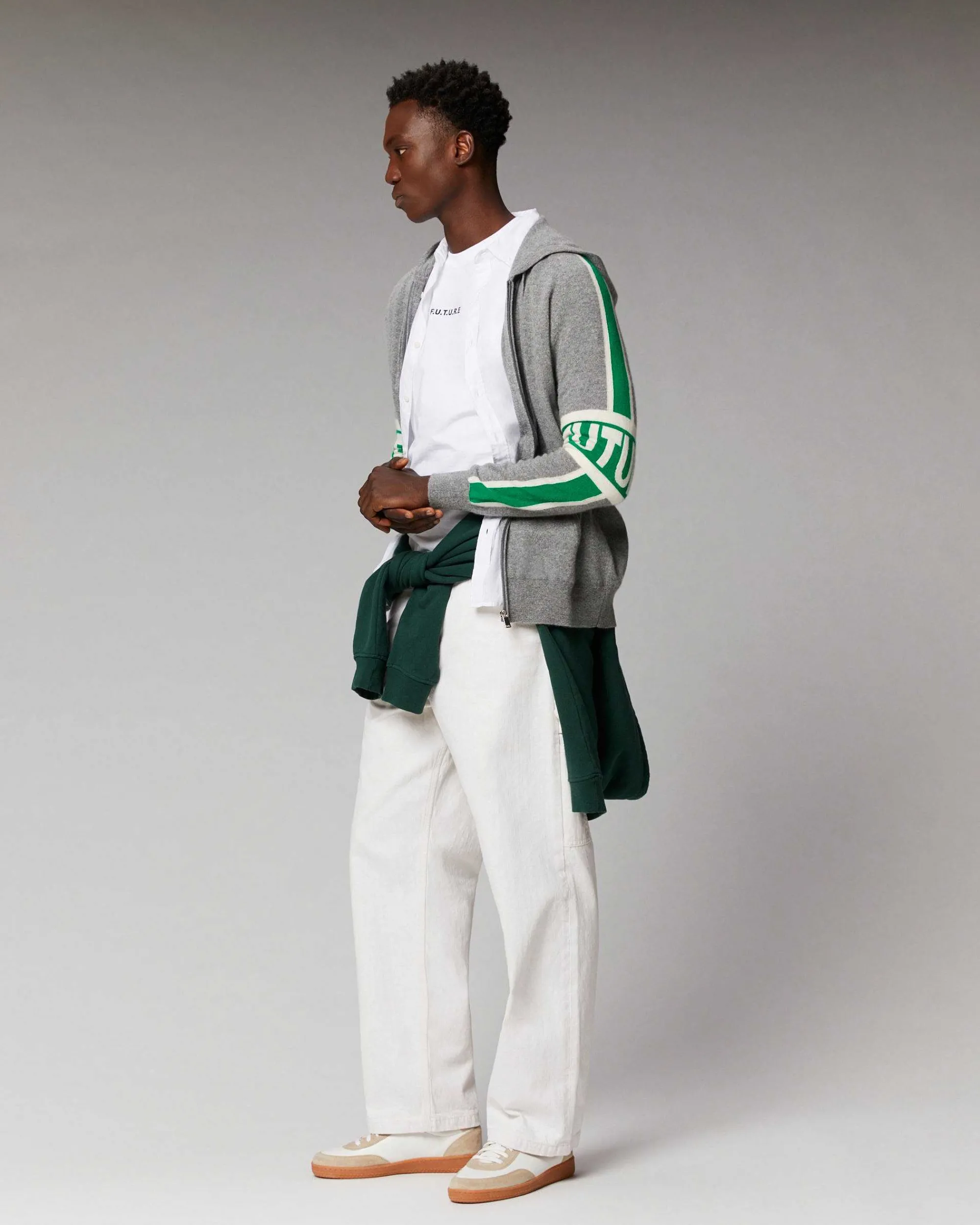 Une Maille Infiniment Douce Se Dévoile Sur Ce Pull Hoodie Confectionné En Cachemire 2 Fils, Muni D’Une Fermeture Zippée, D’Une Capuche À Cordons Et De Deux Poches Latérales. Orné D’Un Jeu De Lignes Futuristes, Des Bandes Bicolores Contrastées Se Dessinent Le Long Des Manches, Ornées D’Une Signature « Future » Aux Coudes. Mixez-Le À Un Jean Ou À Un Jogging, Pour Apporter Une Touche D’Audace À Votre Allure.