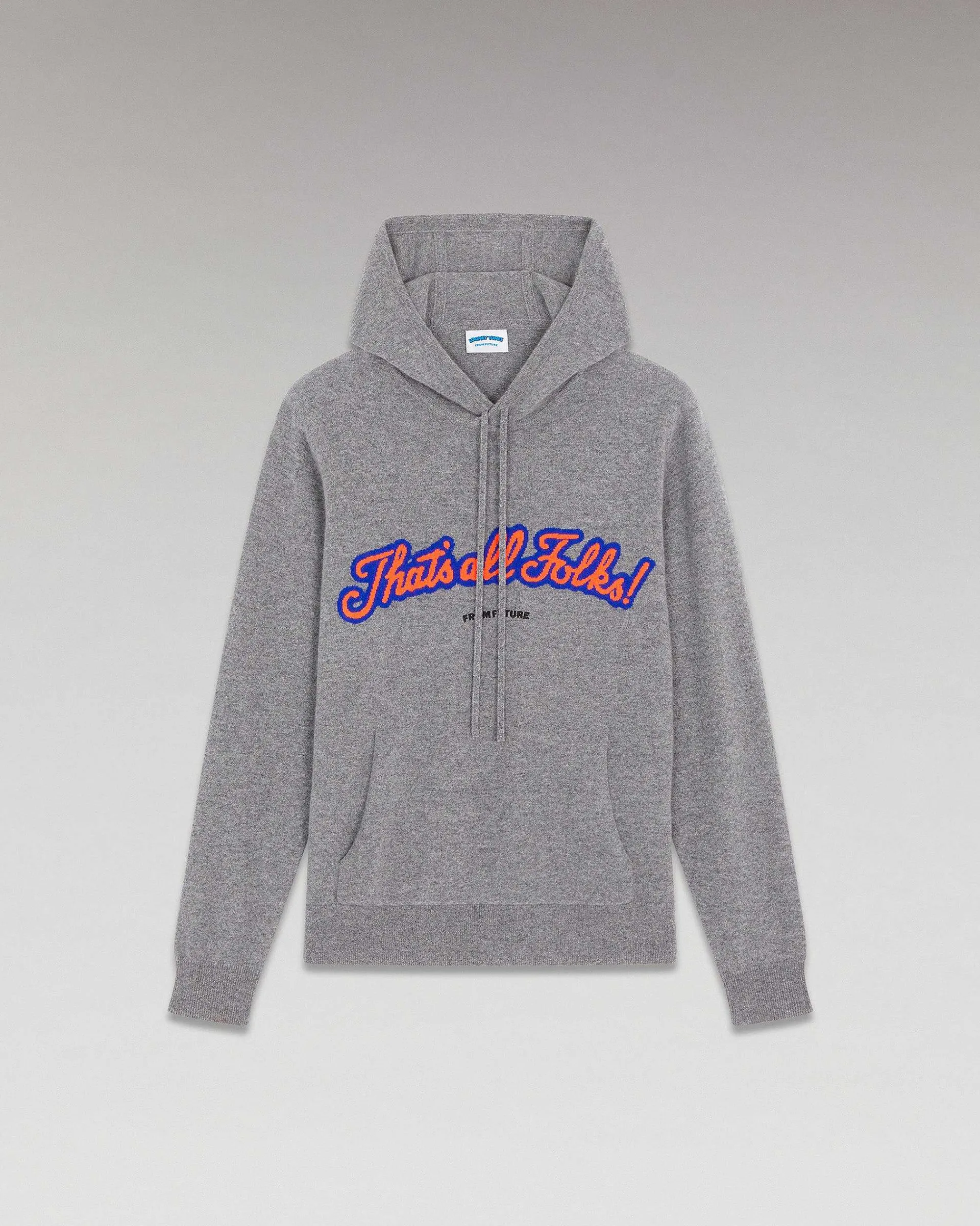 Confectionné En Cachemire 2 Fils, Ce Hoodie Muni D’Une Capuche À Cordons Et De Manches Longues Dévoile Une Broderie Contrastée « That’S All Folks! » Et Une Signature « From Future » À L’Avant. Mêlant Confort Et Douceur, Il Se Mixe À Toutes Vos Silhouettes De Saison.