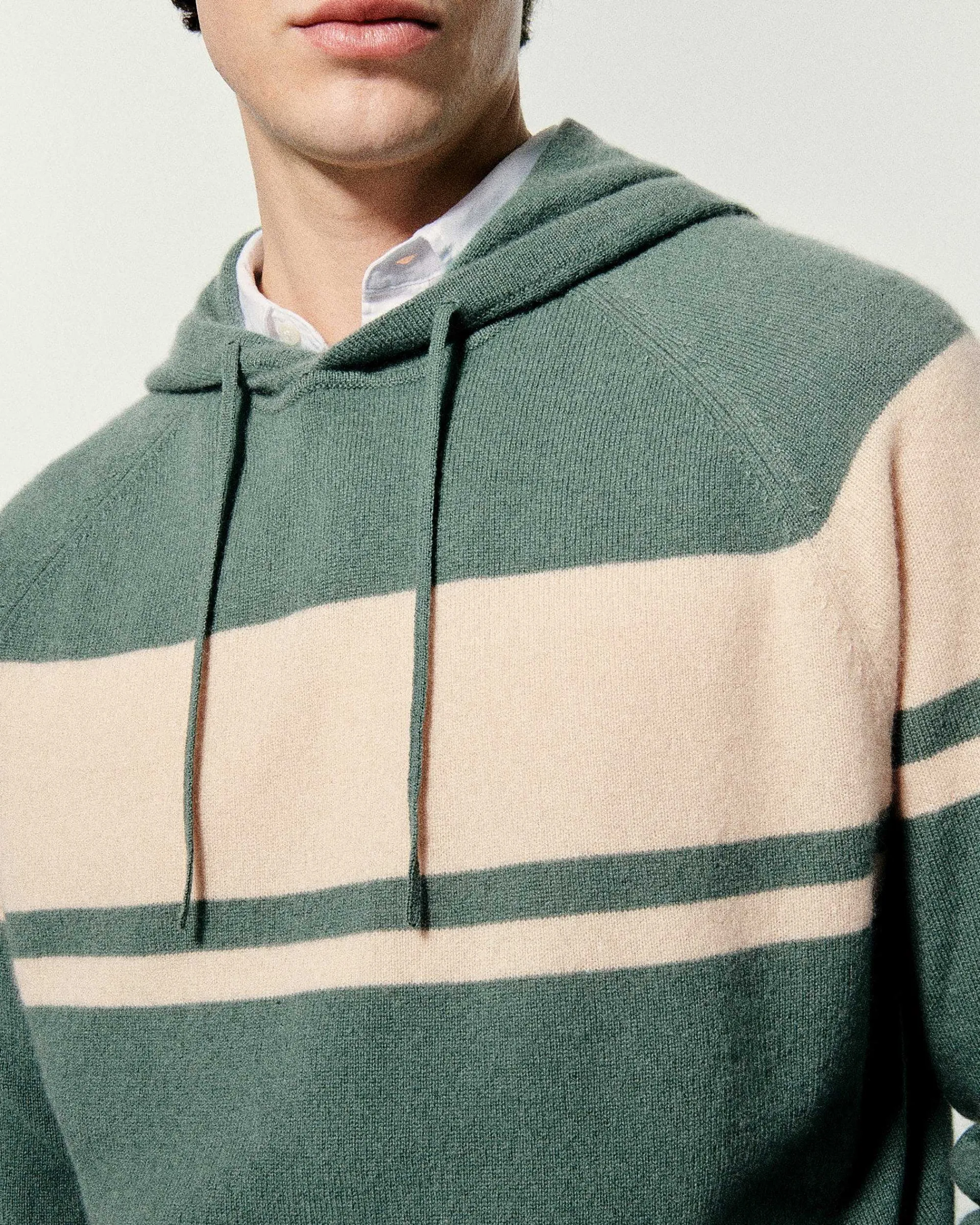 – Pull Hoodie Long En Cachemire 2 Fils Homme