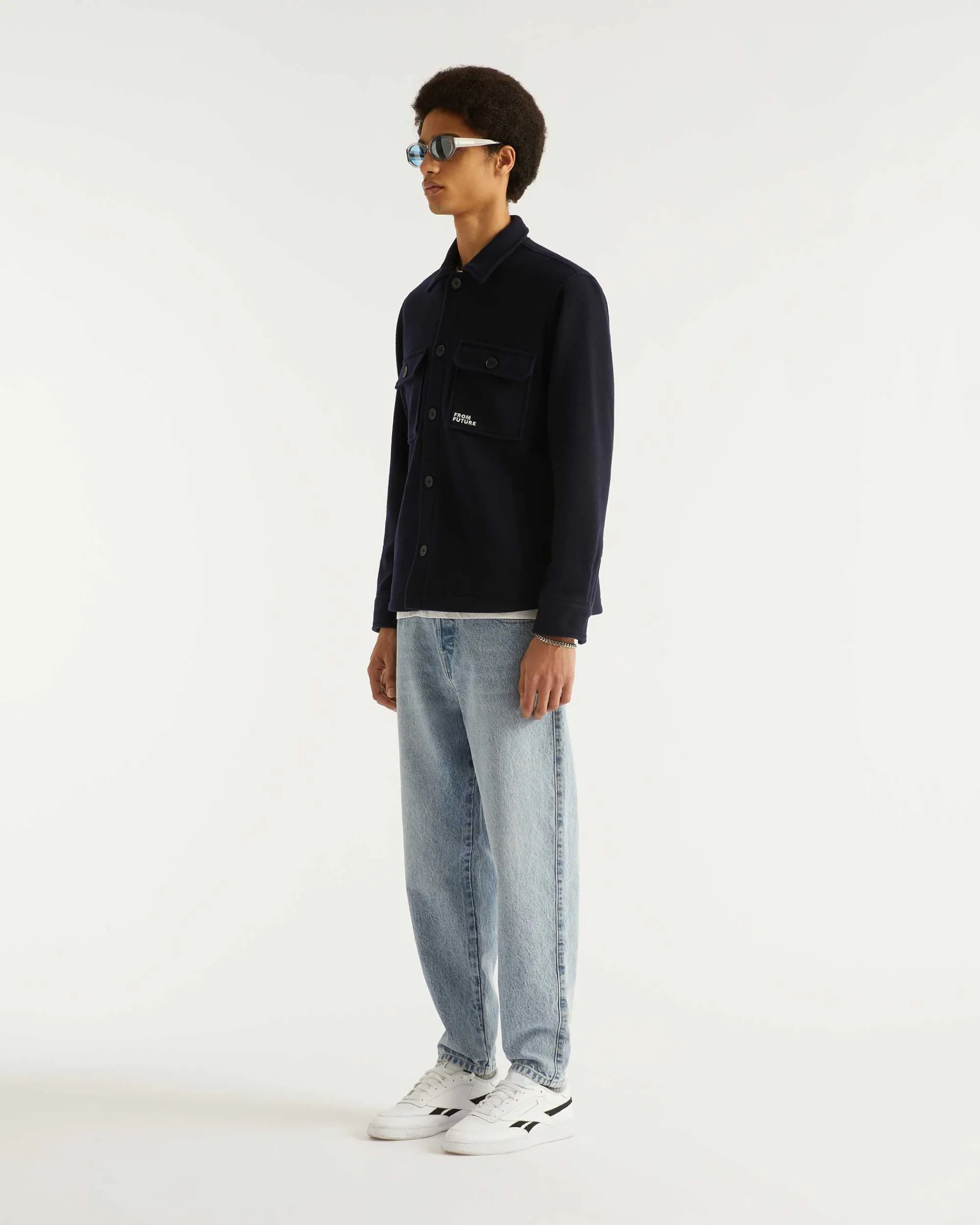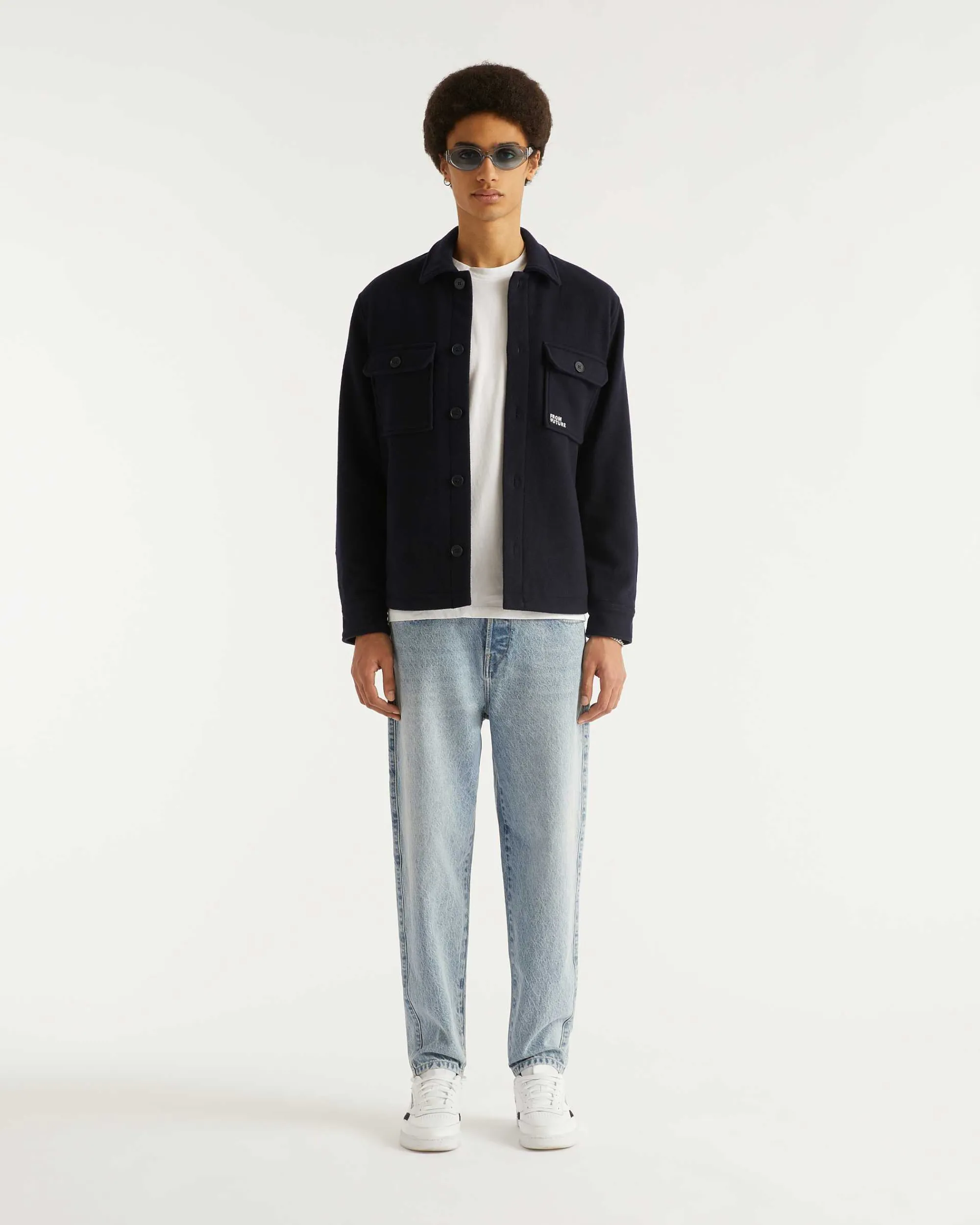 Un Indispensable Du Vestiaire Masculin : Cette Surchemise En Laine Munie De Poches Et De Manches Longues Dévoile Une Broderie « From Future » Sur La Poitrine.