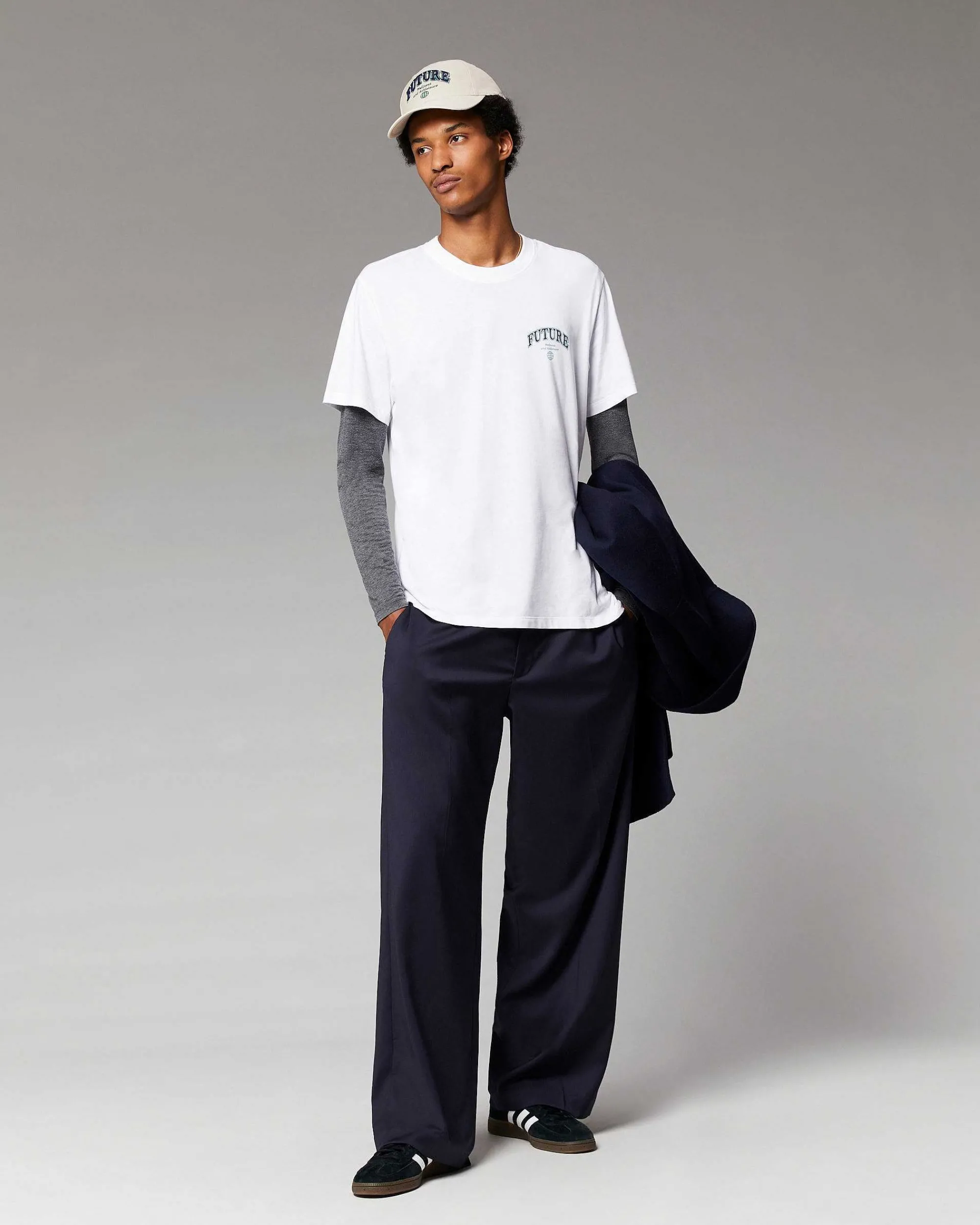 Quand L’Héritage Du Style Universitaire Rencontre L’Audace Du Futur Cosmique : Ce T-Shirt Oversize Esprit Collège Confère Une Allure Affirmée En Toute Décontraction. Muni D’Un Col Rond Et De Manches Courtes, Il Dévoile Une Signature Contrastée « Future » À La Poitrine Qui Vous Invite À Rejoindre Le Club. Intemporel Et Élégant, Il S’Accorde Aisément À Un Jean Casual Ou Un Short Molletonné.