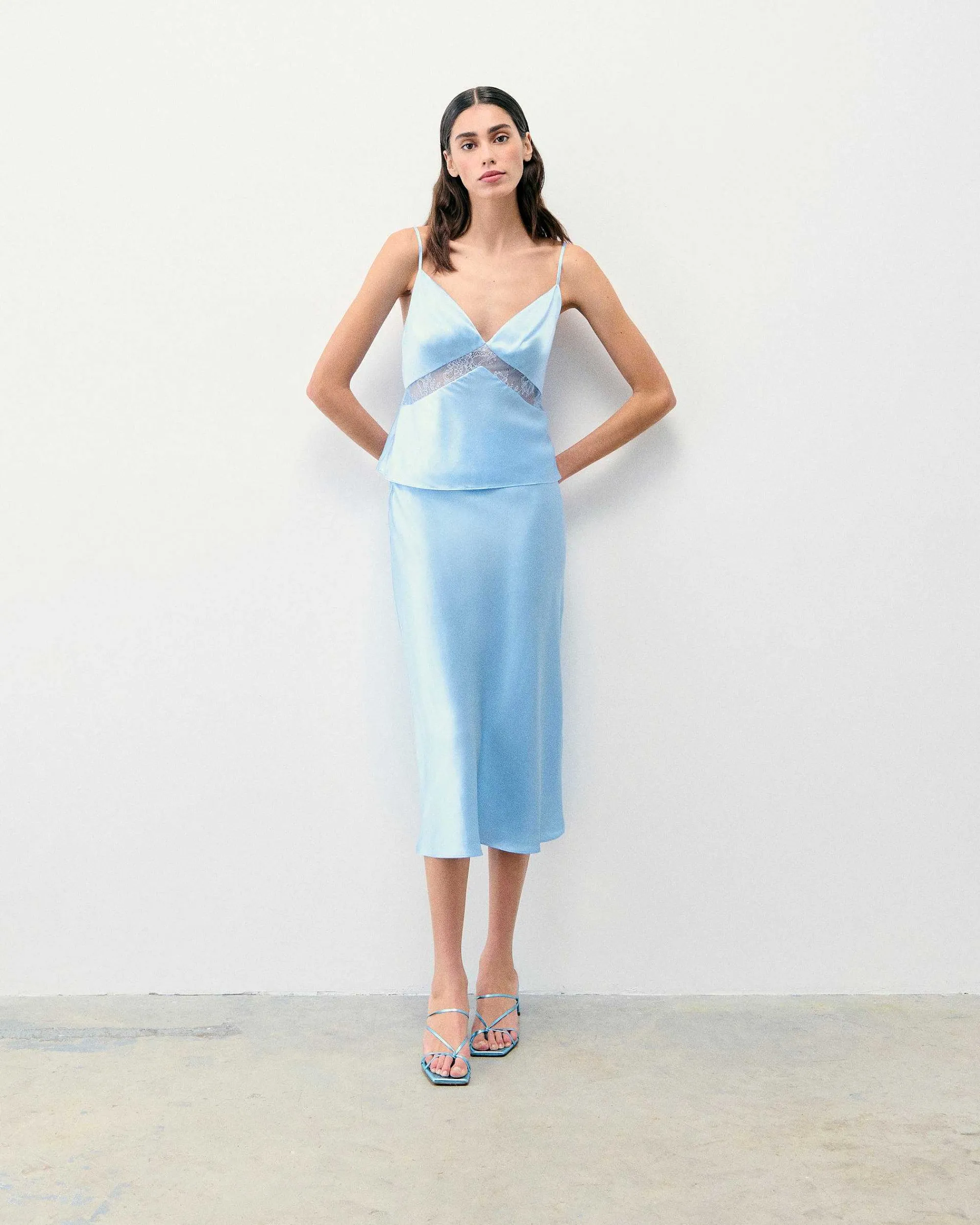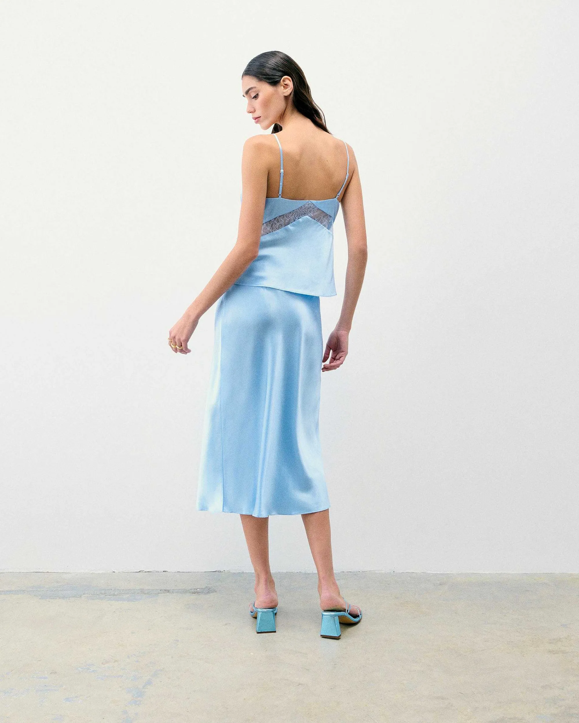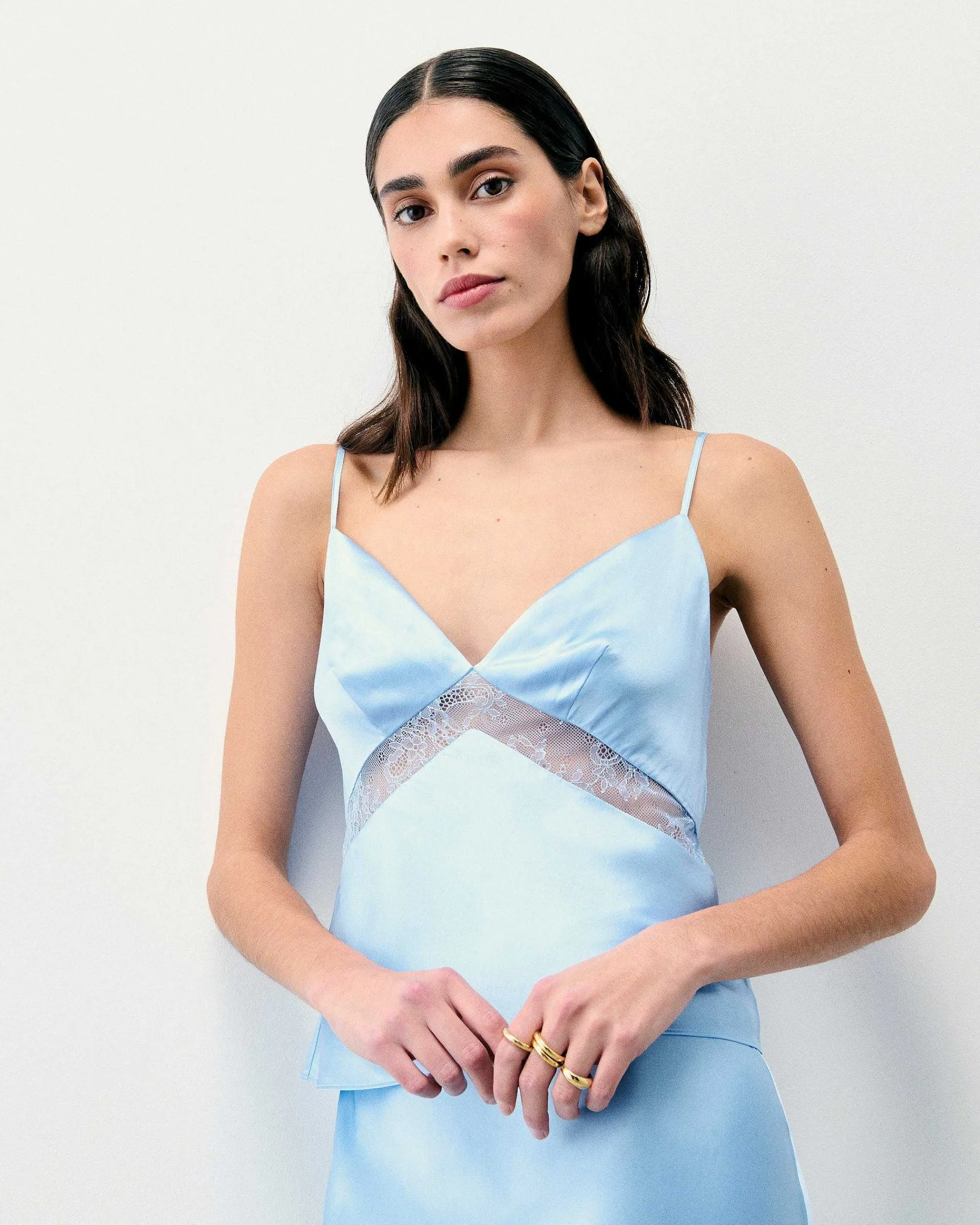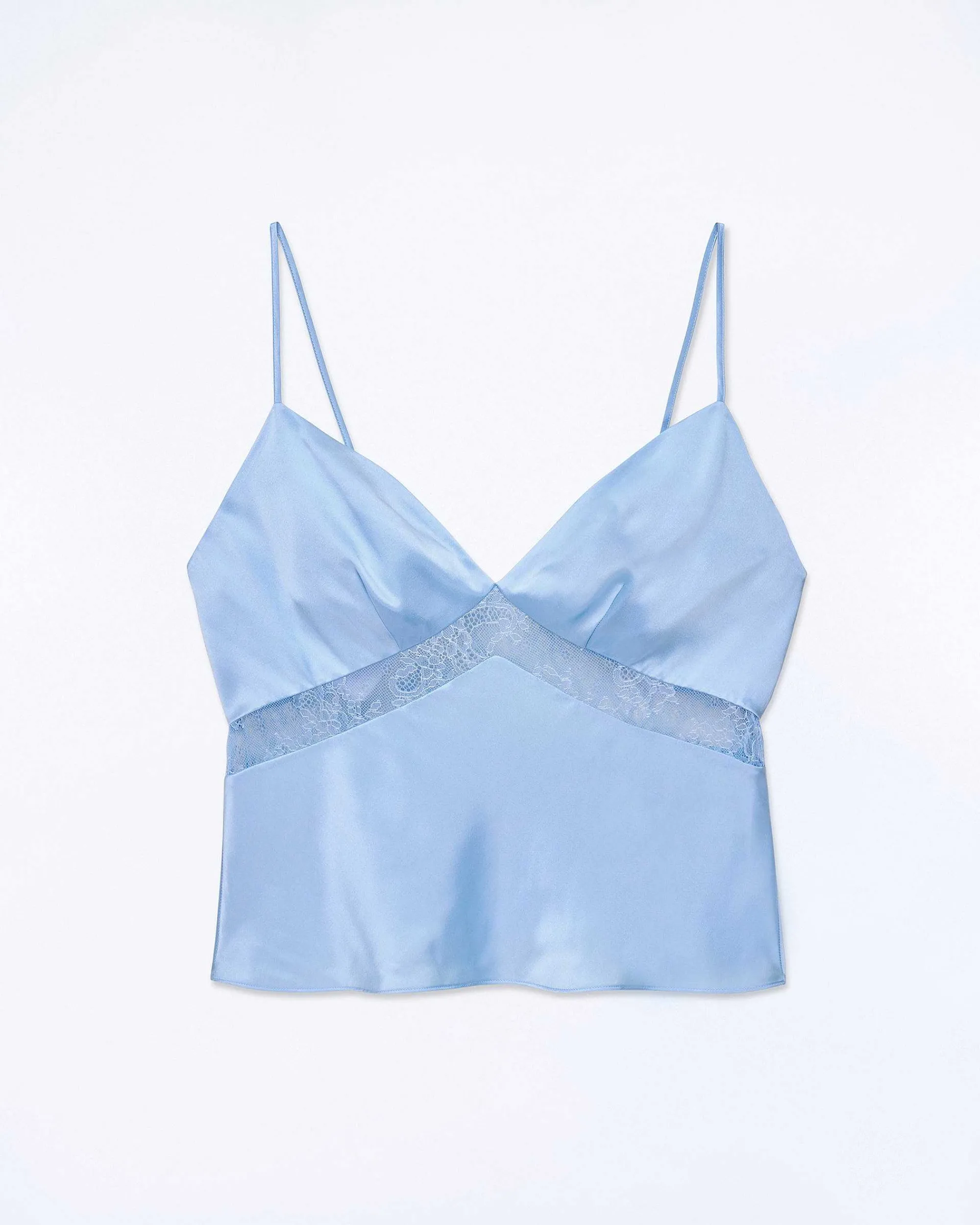 Incarnant L’Élégance Cosmique, Ce Top Court Et Ajusté Est Confectionné En Satin De Soie Léger Et Soyeux. Muni D’Un Décolleté En V Et De Bretelles Fines, Il Se Pare De Bandes De Dentelle. Jouez Le Total Look Chic En L’Associant À Une Jupe Longue Fluide Et Une Paire D’Escarpins.