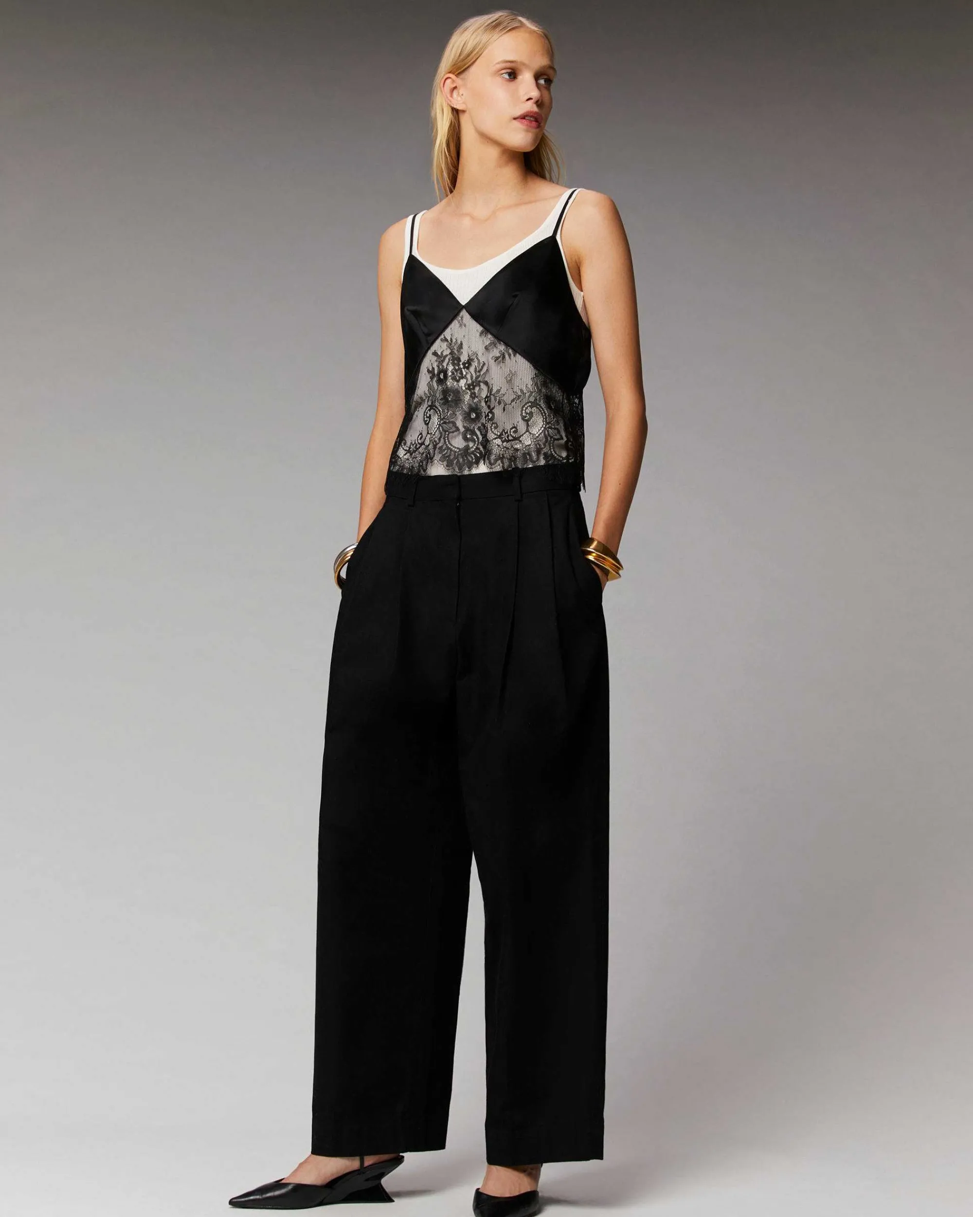 Jeux De Lignes Et De Transparence Pour Ce Top Court Et Ajusté, Confectionné En Satin De Soie Léger, Brillant Et Soyeux. Muni De Fines Bretelles Ajustables, Il Affiche Un Décolleté En V Et Des Découpes En Dentelle, Structurant Votre Silhouette Futuriste Avec Audace. Jouez Le Total Look Chic Et Irrésistible Avec La Jupe Coordonnée, Une Paire D’Escarpins Et Des Bijoux.