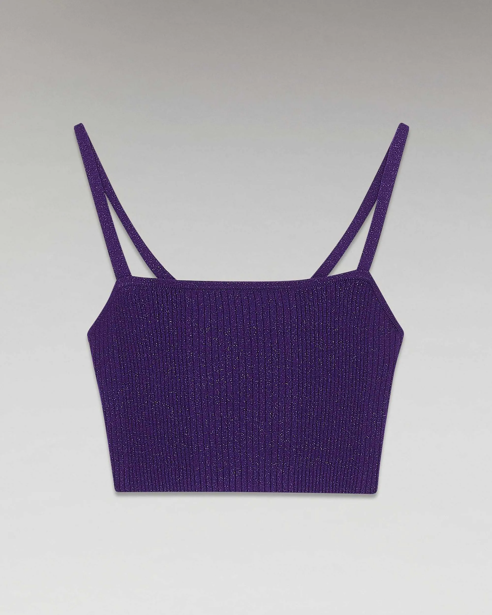Effet Seconde Peau Pour Ce Top En Laine Mérinos Extra Fine Certifiée Rws (Responsible Wool Standard) Et En Lurex. En Maille Côtelée, Moelleuse Et Ultra Aérée, Il Dévoile De Fines Bretelles Et Un Décolleté Droit.