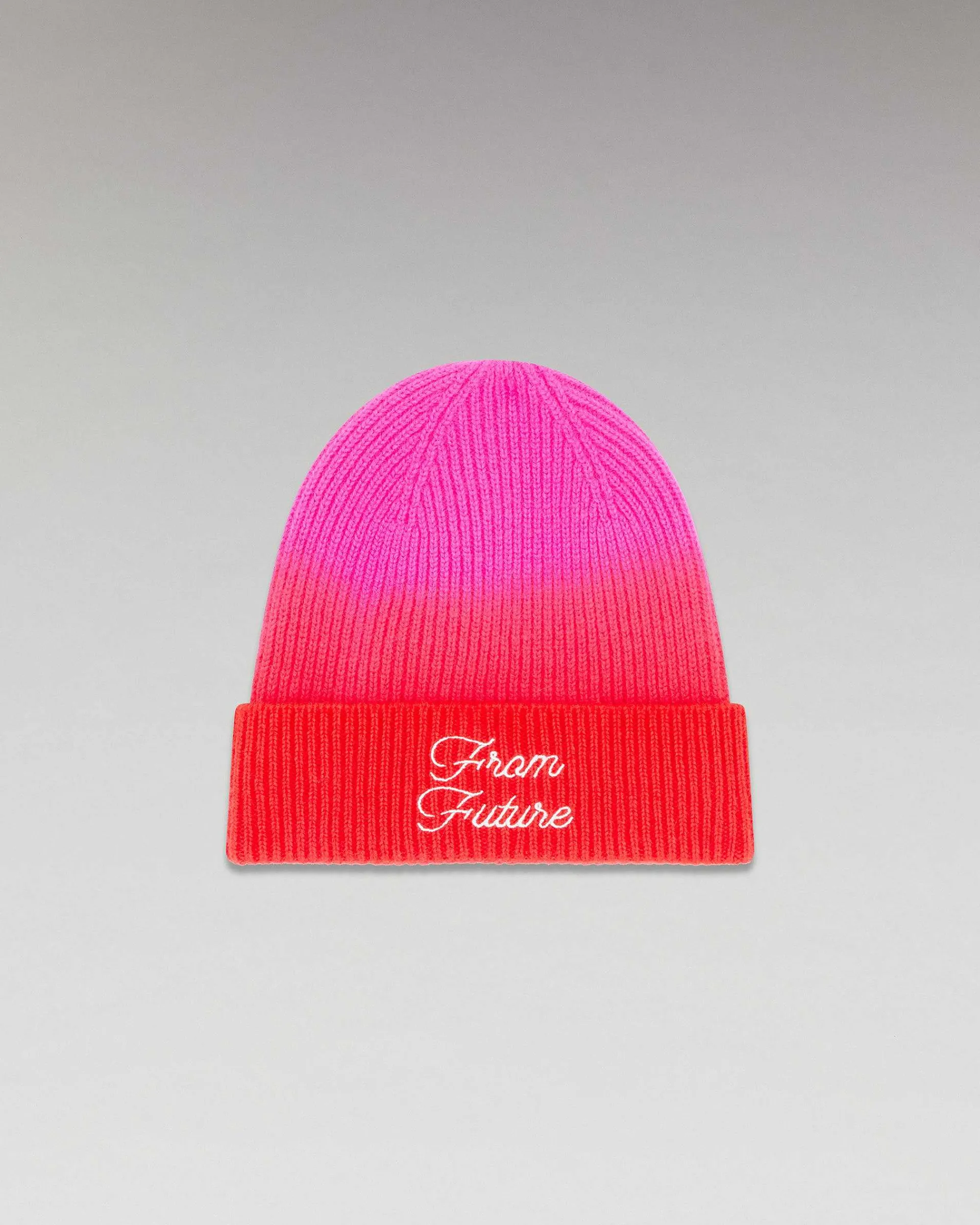 Un Dégradé Dip Dye Aux Couleurs Vibrantes S’Invite Sur Ce Bonnet À Revers Et Côtelé. Confectionné En Cachemire 6 Fils, Il Dévoile Une Signature « From Future » Brodée À L’Avant. Alliant Douceur, Confort Et Audace, Il Vient Illuminer Votre Silhouette De Saison.