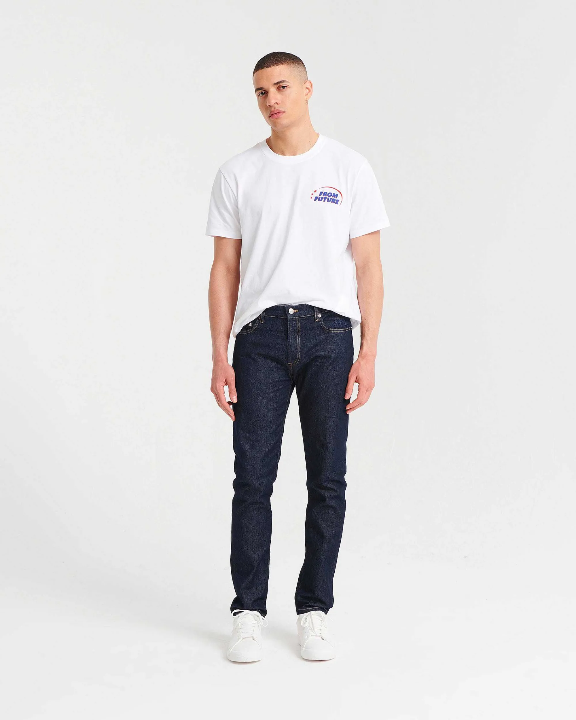 Tout Savoir Sur Jacob : Jean Slim Fit. Broderie From Future Semi-Cachée Au Niveau De La Poche Gauche. Jacron Coloré À L’Arrière. Fermeture Par Boutons Siglés Sur Le Devant.