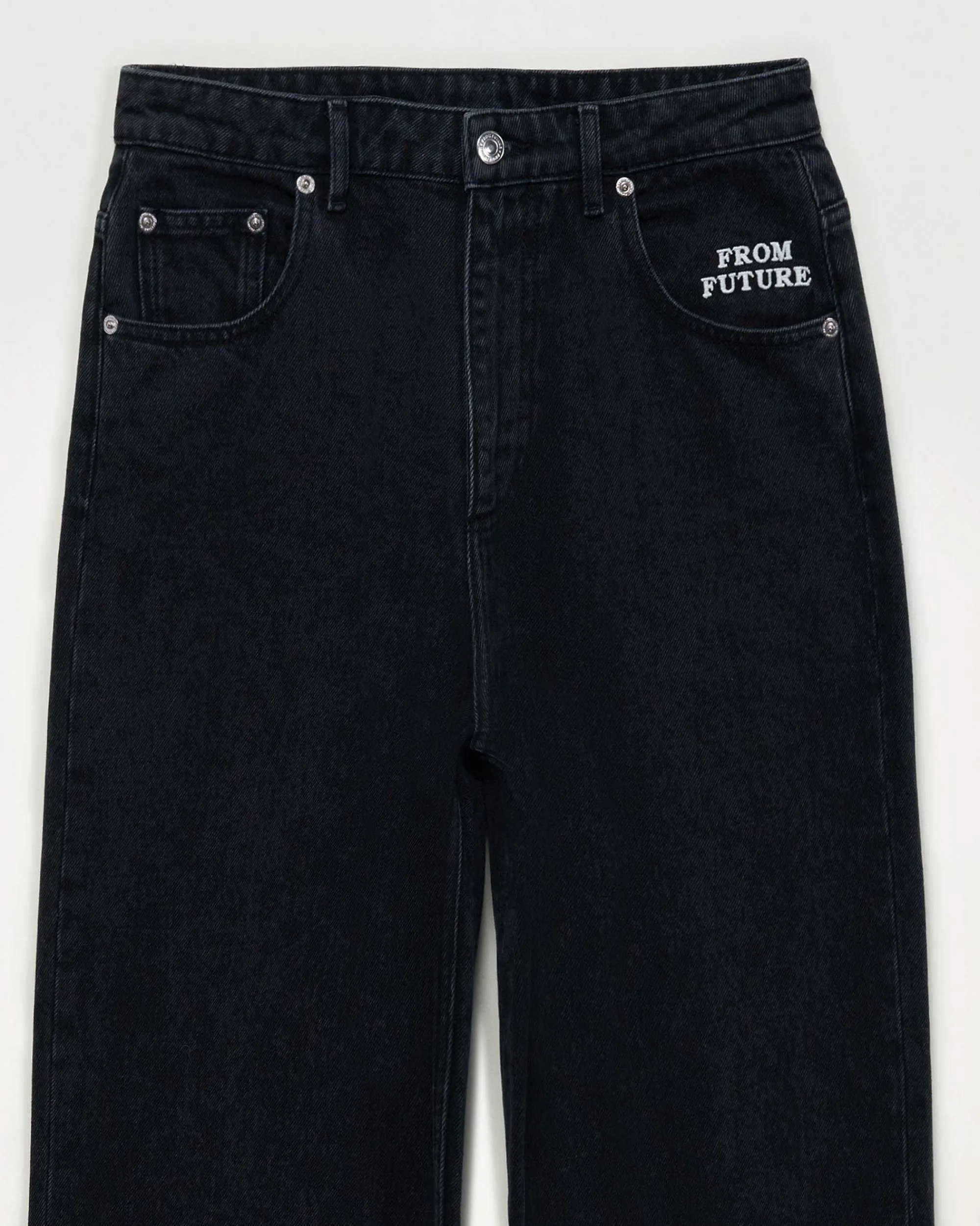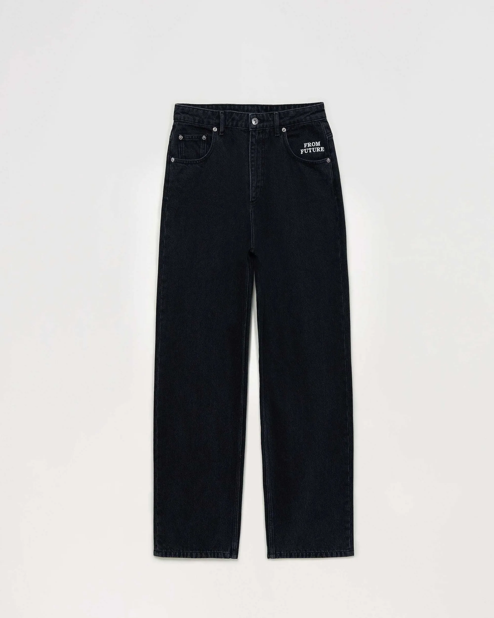 Le Jean Parfait. Détail En Broderie « From Future » Semi-Caché Sur La Poche Gauche. Jambes Droites Pour Allonger La Silhouette Sans Trop Mouler. Un Intemporel Que Vous Porterez Toute L’Année.