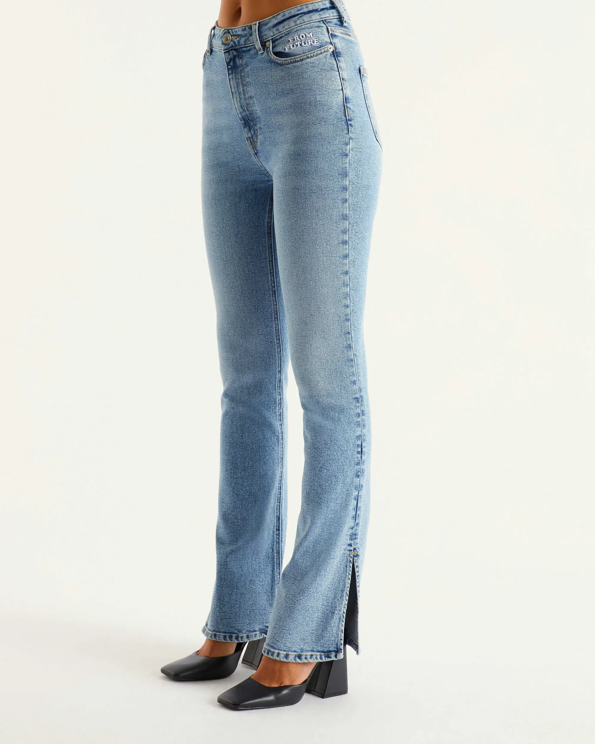 Rencontrez Joe : Le Bootcut Élégant Avec Détail En Broderie « From Future » Semi-Caché Sur La Poche Gauche. 5 Poches, Taille Haute, Fermeture Par Bouton Métallique, Bas De Jambes À Bords Francs Avec Fentes Sur Le Côté. Un Bon Basique Que Vous Porterez Toute L’Année.