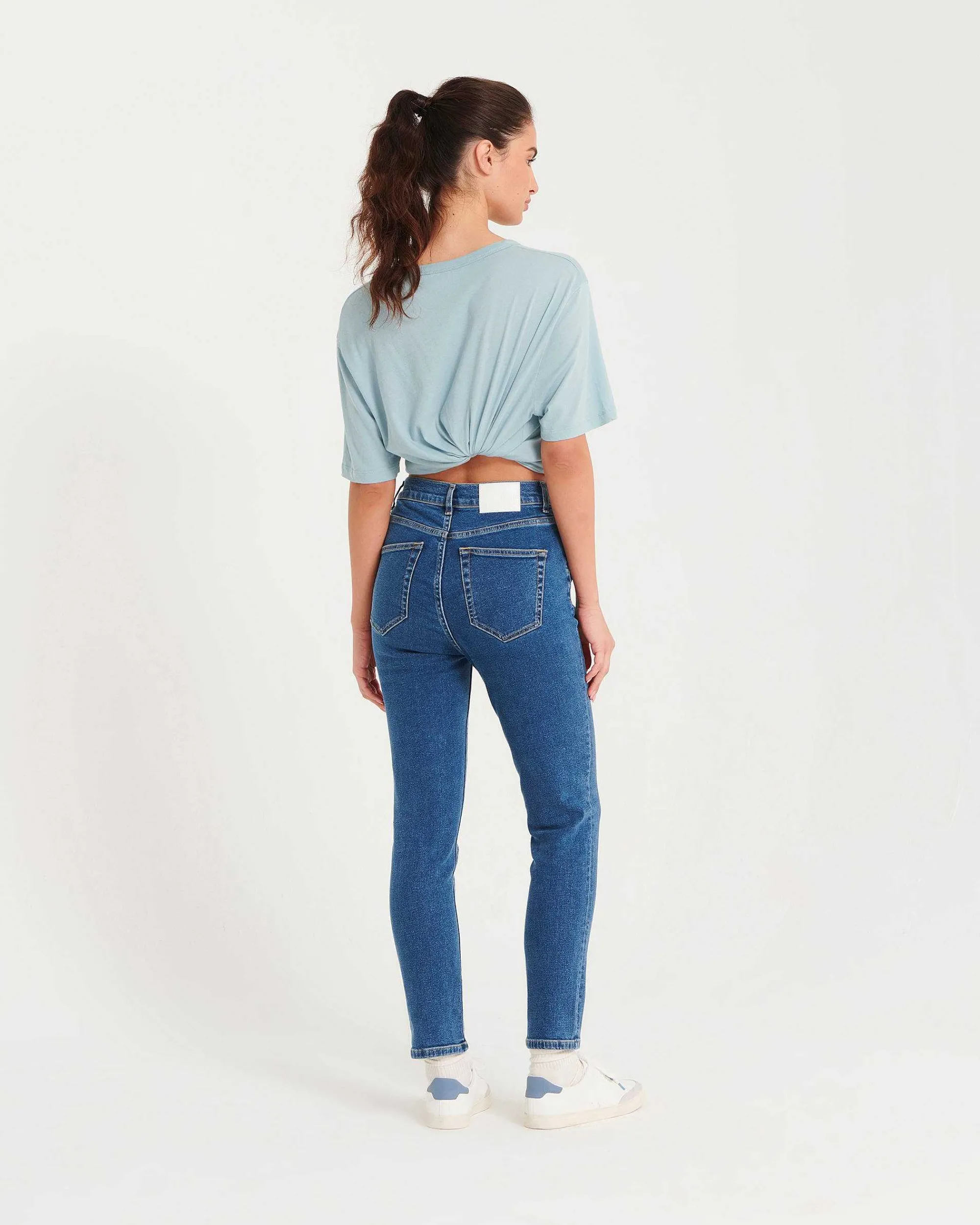 Rencontrez Johnny : Notre Jean Slim Fit Avec Broderie « From Future » Semi-Cachée Sur La Poche Gauche. Longueur Moulante Idéale Pour Fuseler La Silhouette, Taille Mi-Haute. Longueur 7/8Ième.