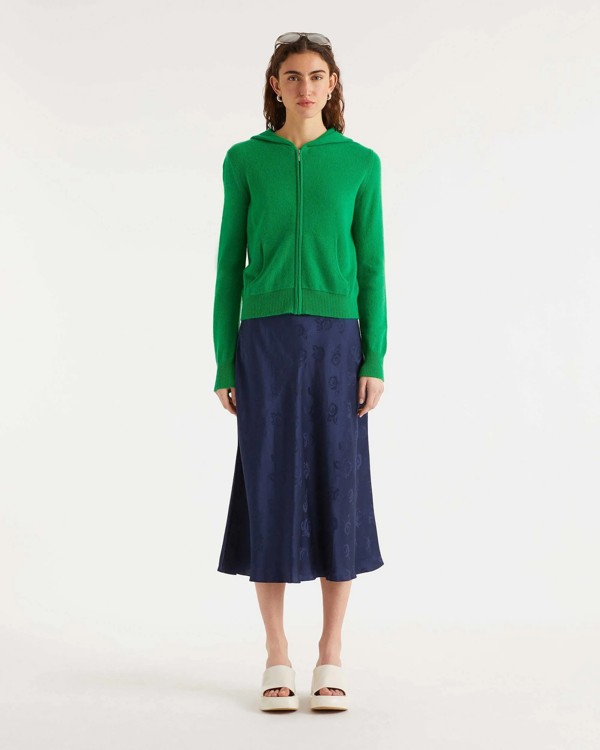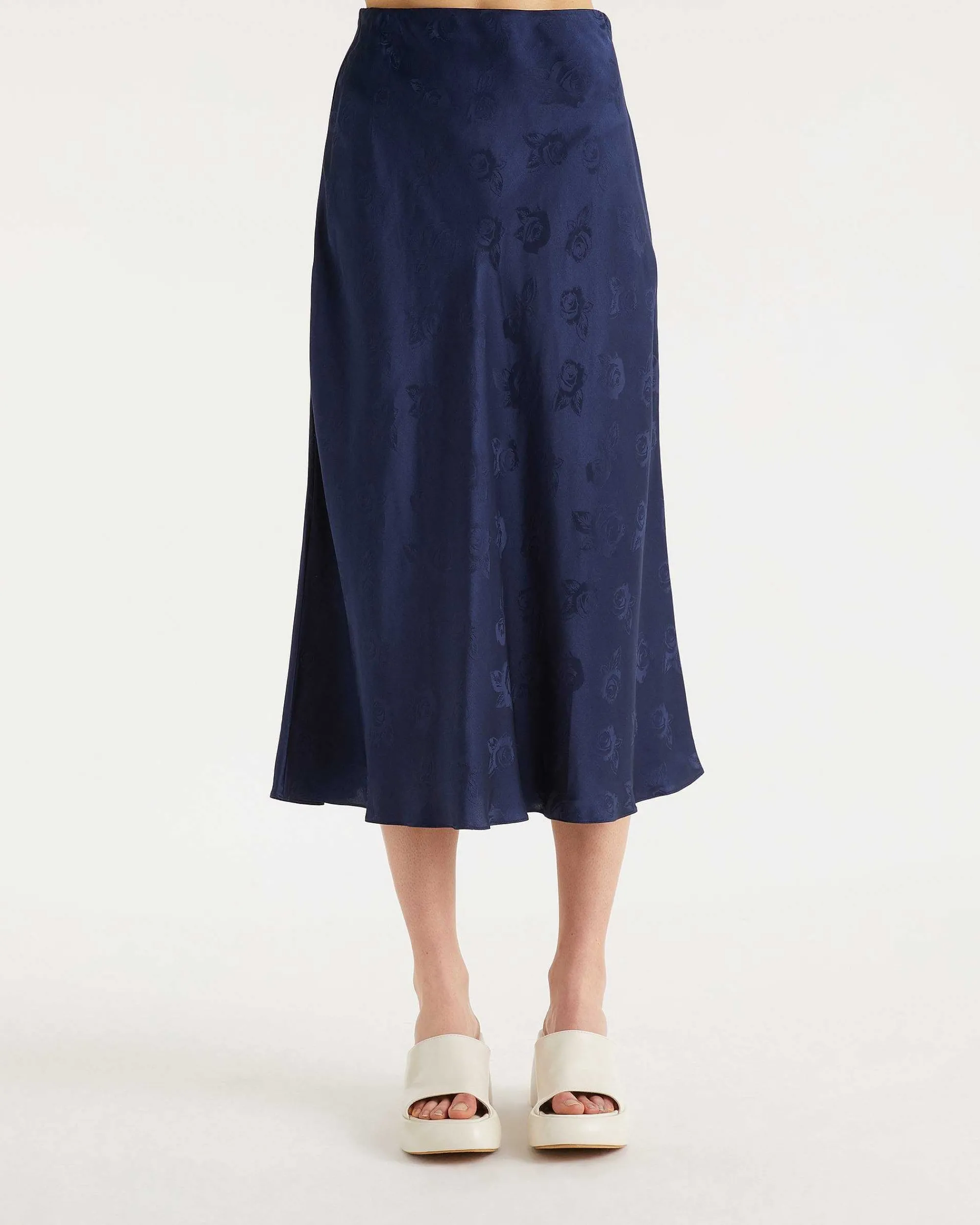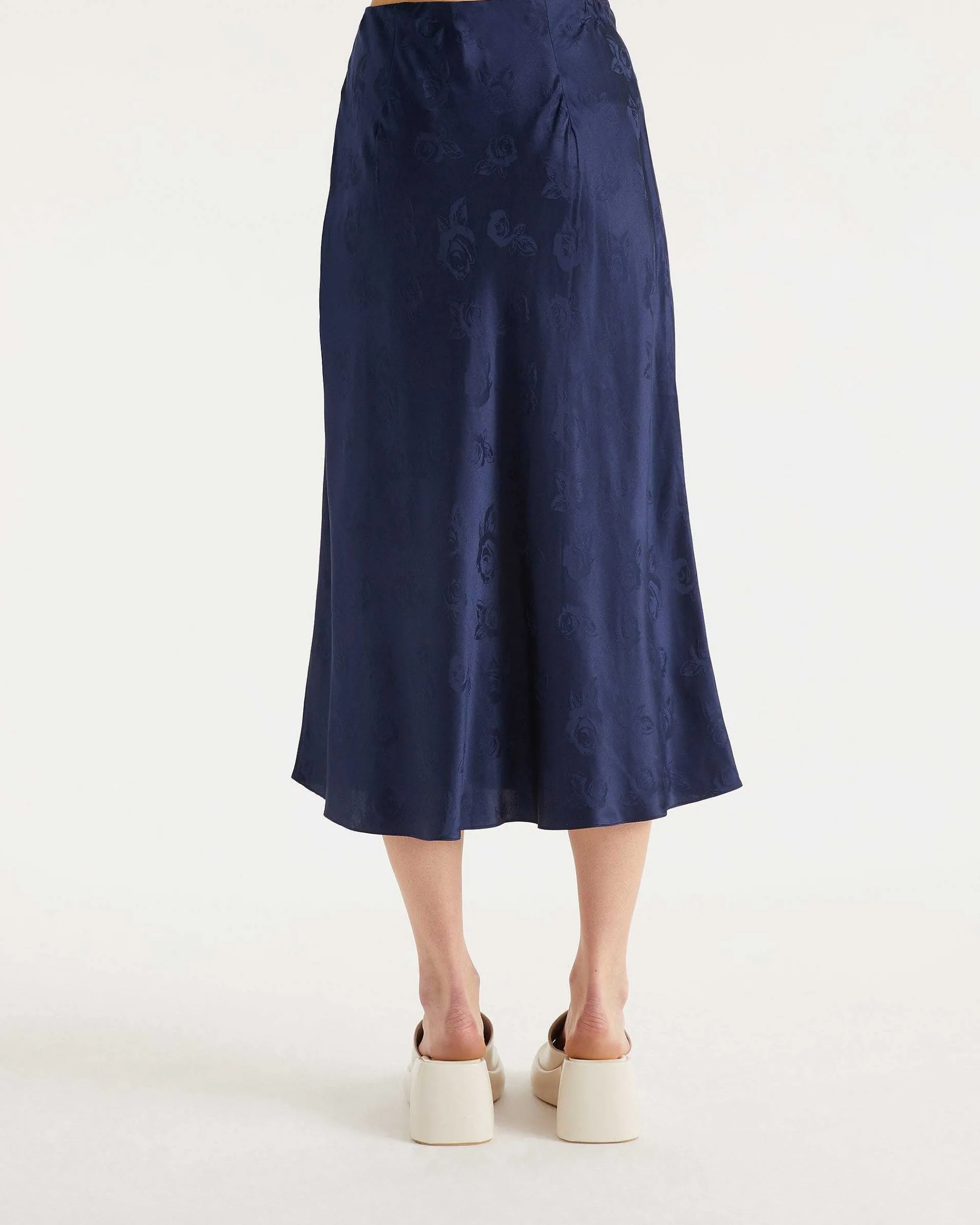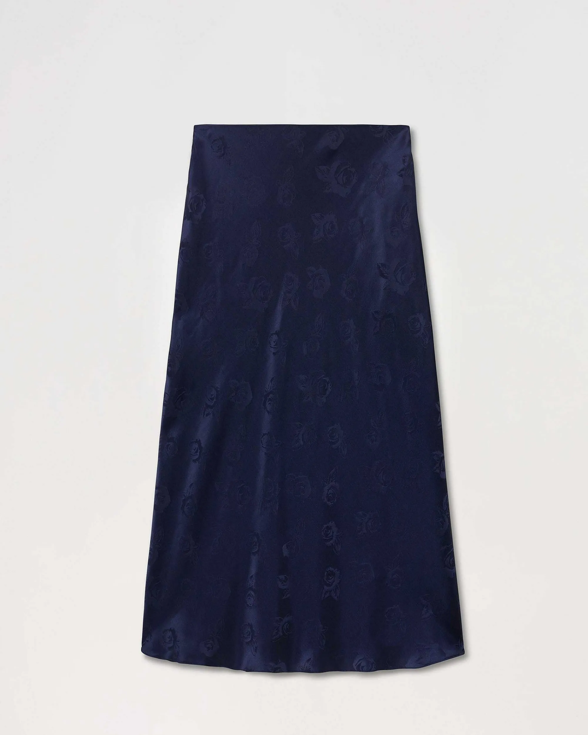 Satin De Soie Léger Et Soyeux Pour La Jupe Carmen Fluide Mi-Longue. Incontournable Du Vestiaire Féminin Et Facile À Coordonner, Elle Dévoile Un Tombé Parfait Légèrement Évasé Sur Le Bas.