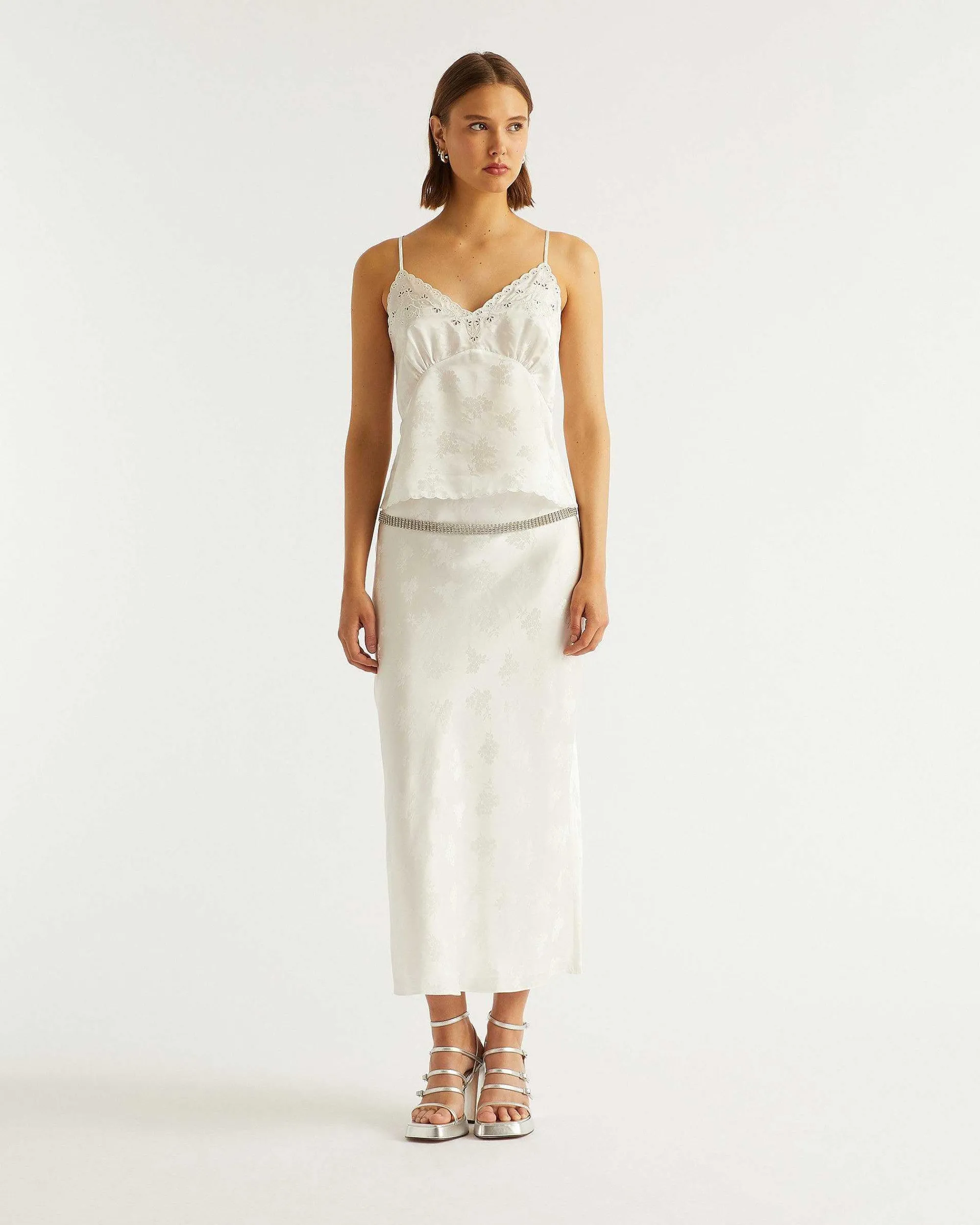 Confectionnée En Satin De Soie Brillant Et Léger, La Jupe Vicky Confère Beaucoup D’Allure. Évasée Sur Le Bas, Elle Adopte Un Imprimé Aux Couleurs Vibrantes.