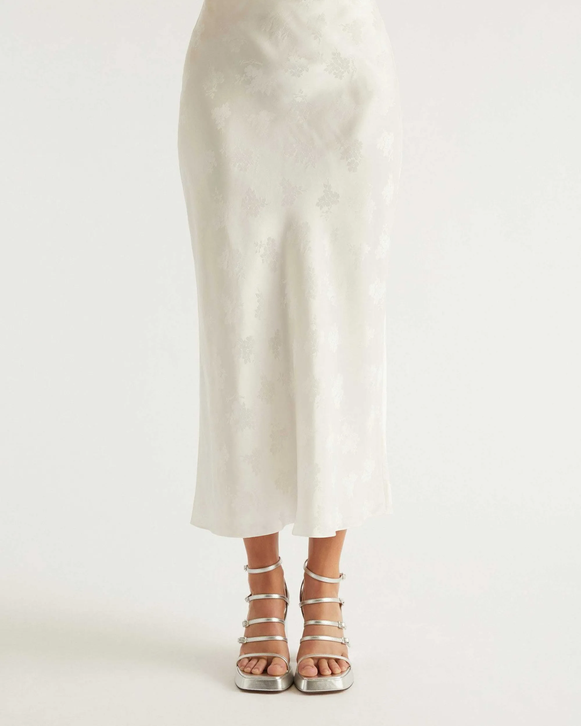 – Jupe Mi-Longue En Satin De Soie Femme