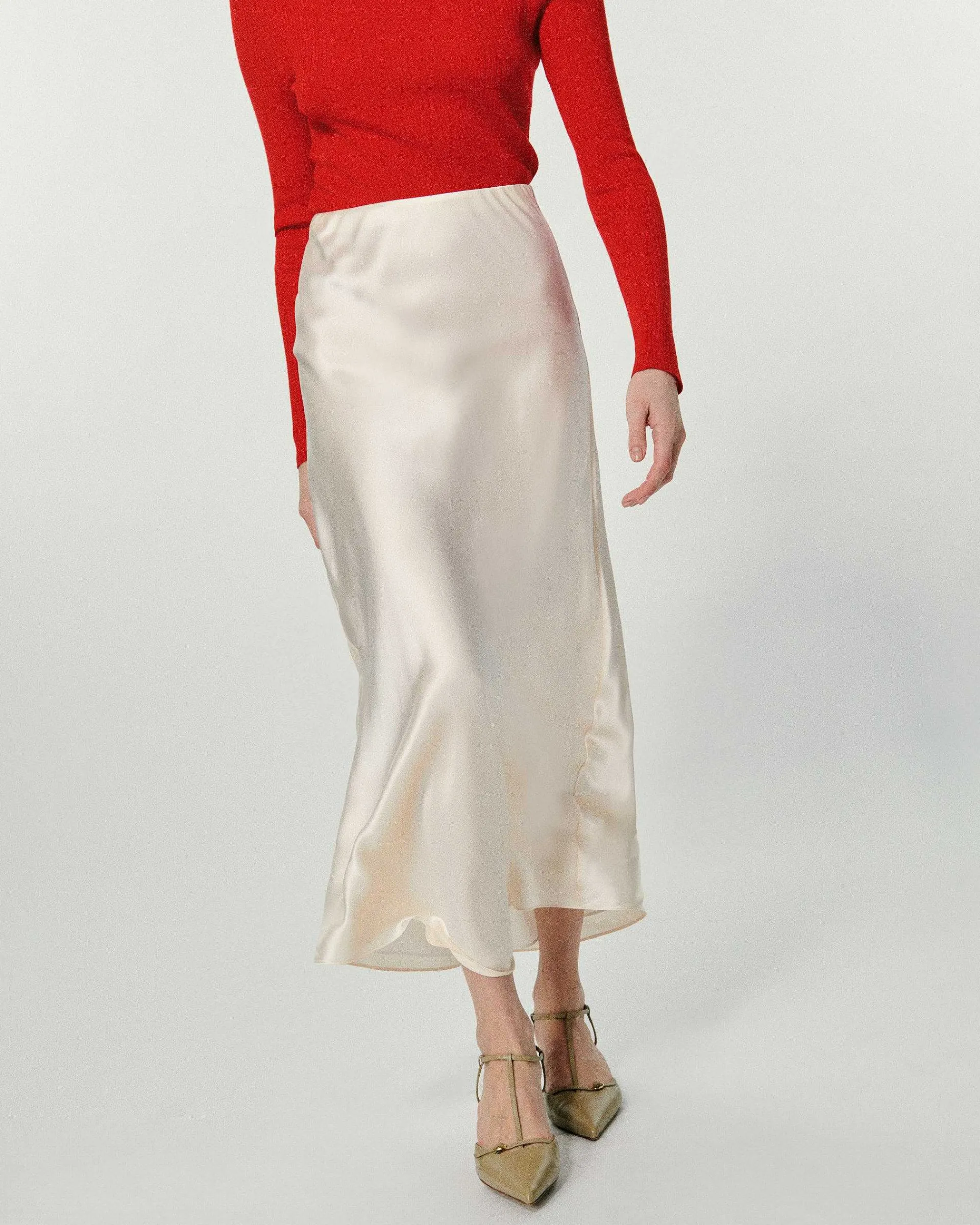 – Jupe Mi-Longue En Satin De Soie Femme