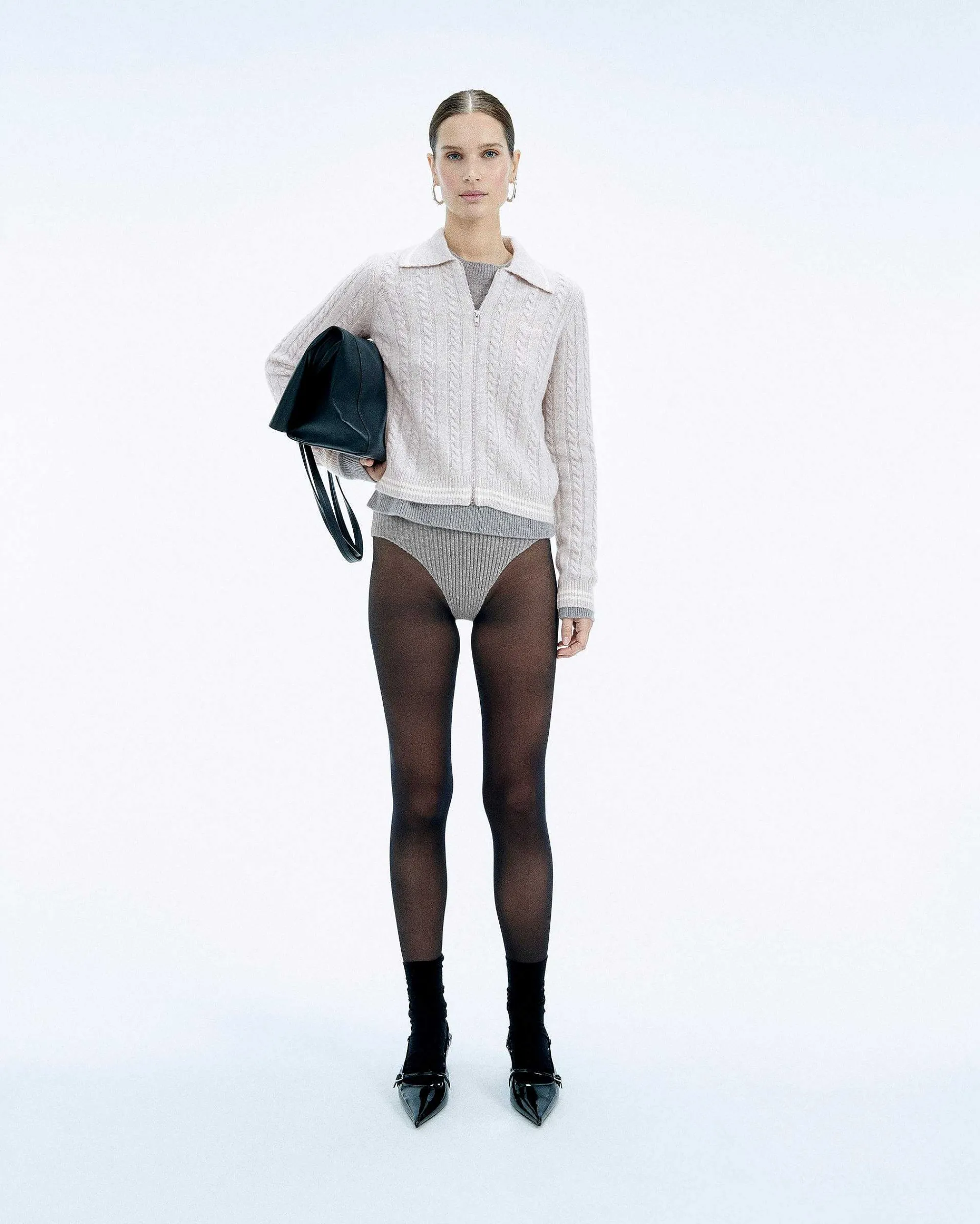 Confectionné En Cachemire 4 Fils, Ce Pull Cardigan Court Réchauffe Votre Allure Futuriste Tout En Douceur. Muni D’Un Col Large Et De Manches Longues, Il Affiche Une Fermeture Zippée Et Des Bords Côtelés. Une Signature Brodée « Future » Se Dévoile À La Poitrine, Vous Invitant À Rejoindre Le Club. Mixez-Le À Un Jean Casual Ou À Une Jupe En Maille.