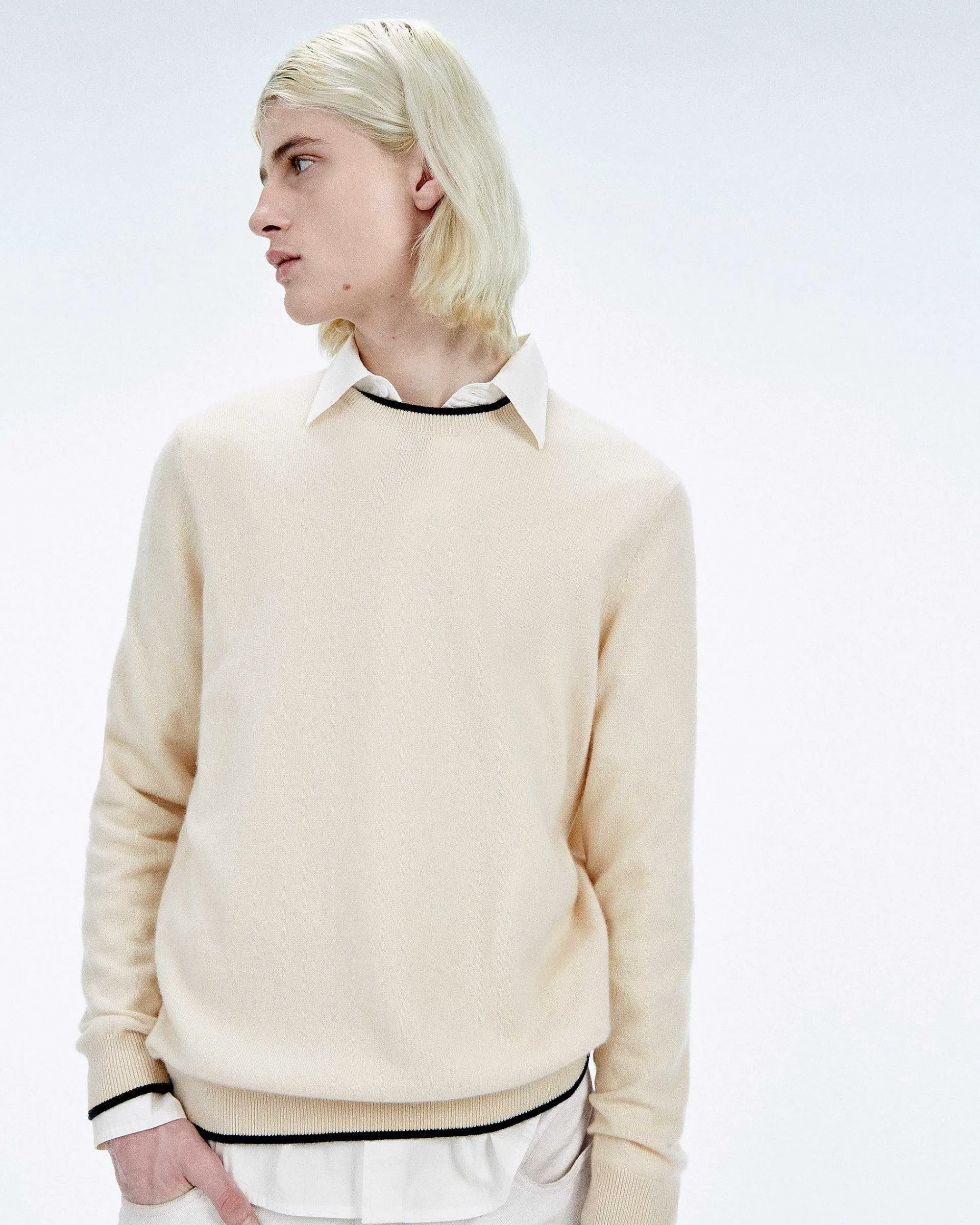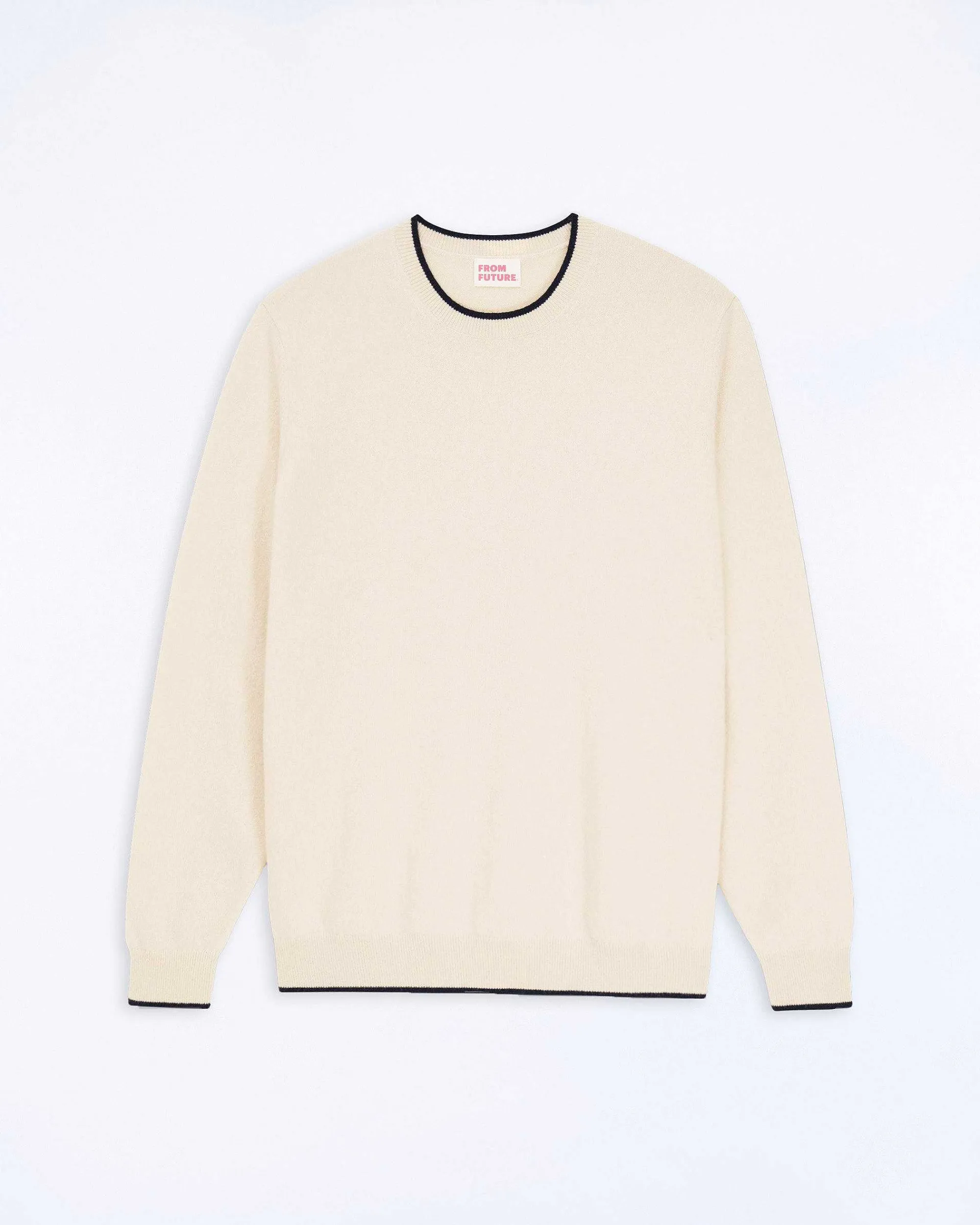 Douceur Céleste Et Style Cosmique : Ce Pull En Cachemire Muni De Manches Longues Dévoile Un Col Rond À Bords Contrastés.