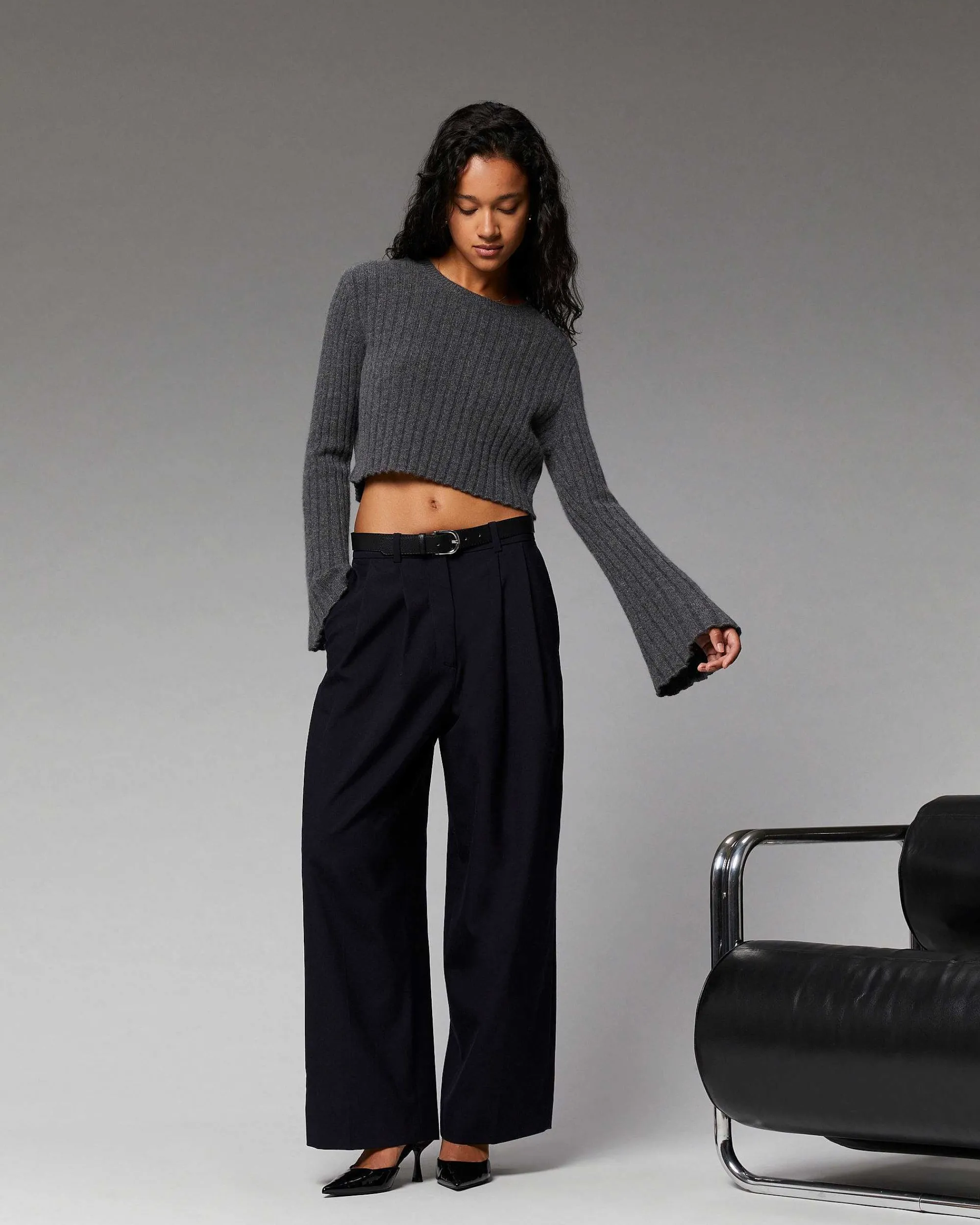 Coupe Audacieuse Et Lignes Futuristes Pour Ce Pull Court Confectionné En Cachemire 4 Fils. Délicatement Côtelé, Il Joue Avec Les Volumes Et Dévoile Un Col Rond Et Des Manches Longues Évasées. Idéal Pour Structurer Votre Silhouette, Mixez-Le À Un Pantalon Ample Marqué D’Une Ceinture Et Une Paire D’Escarpins.