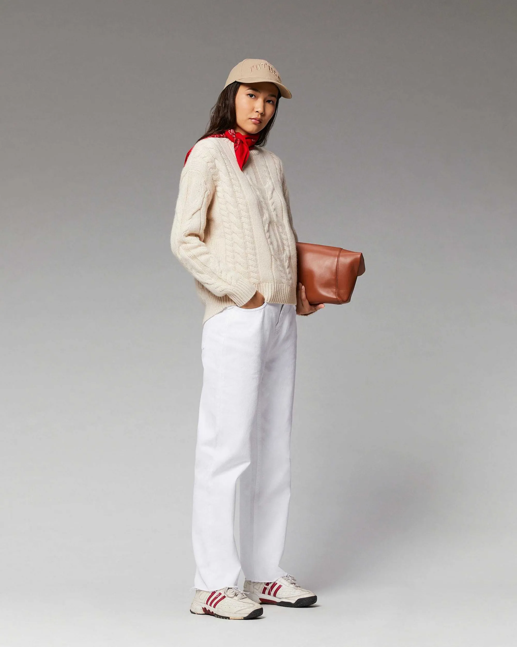 Un Jeu De Torsades Se Dévoile Sur Ce Pull Confectionné En Cachemire Épais 10 Fils. Court Et Oversize, Il Est Muni D’Un Col Rond, De Manches Longues Et De Bords Côtelés. Incarnant L’Élégance Intemporelle, Il Vient Réchauffer Votre Allure Futuriste Tout En Douceur. Pièce Incontournable De La Saison, Associez-Le À Un Pantalon Droit Et Ponctuez Le Tout Avec Des Sneakers, Un Sac Et Une Casquette.