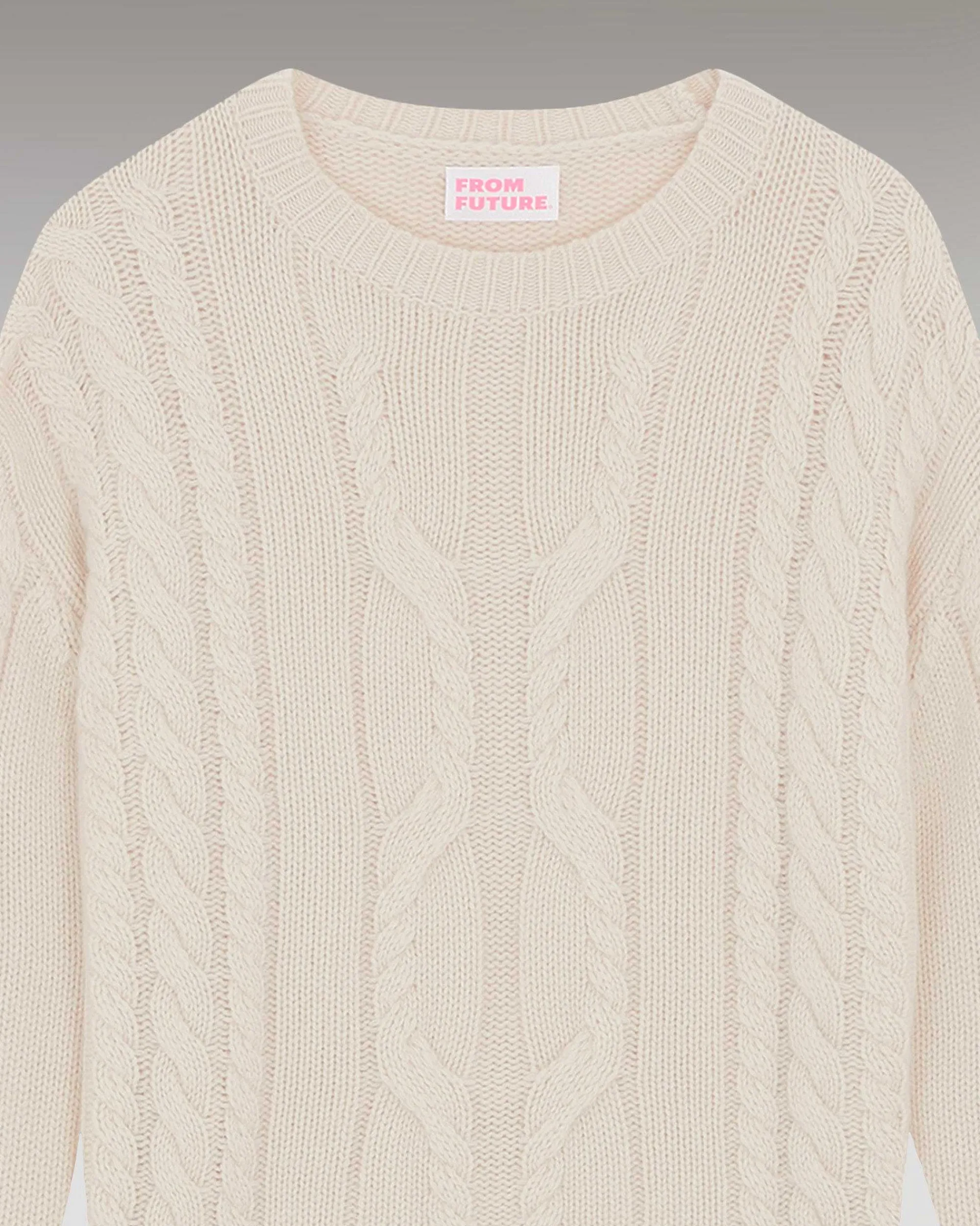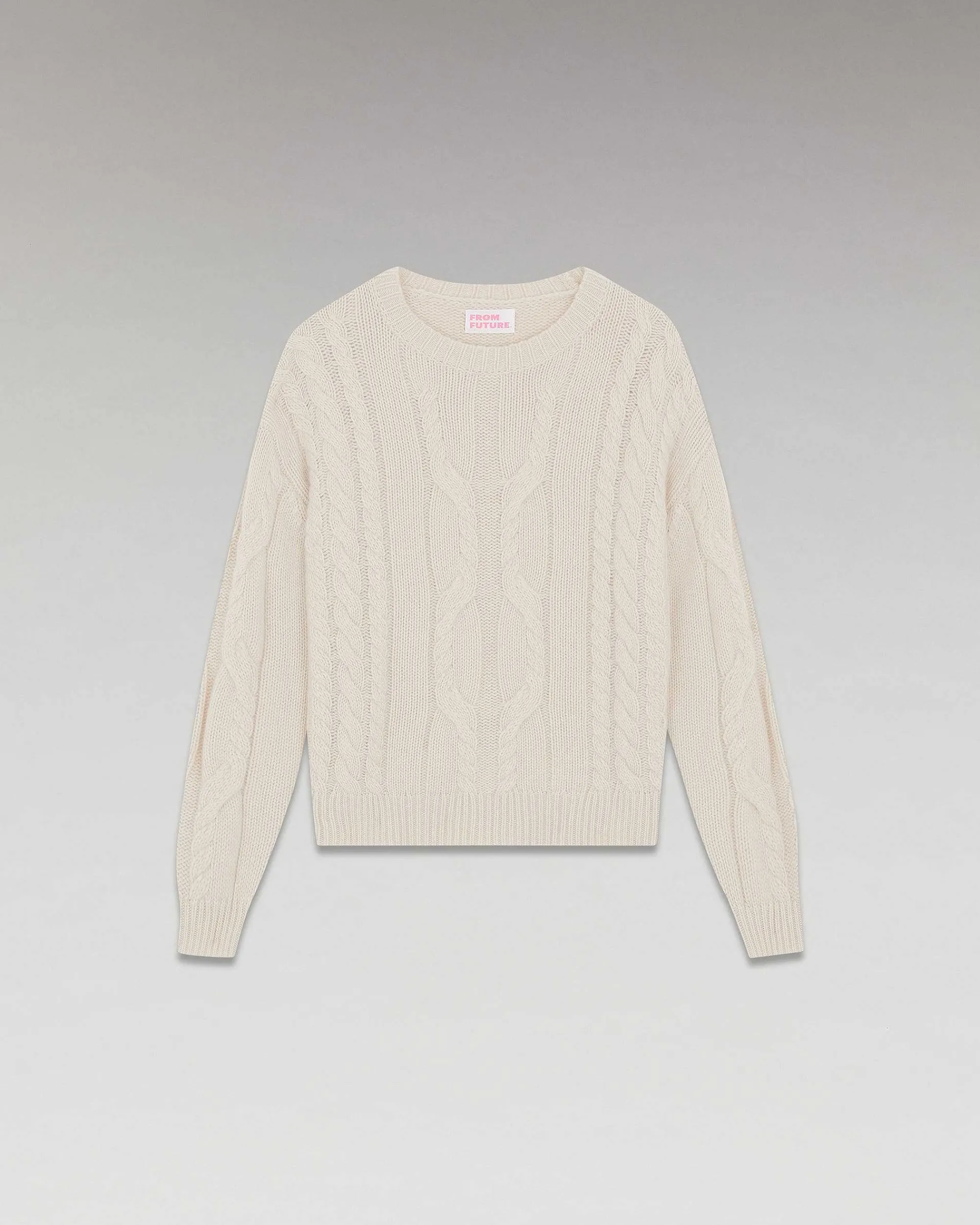 Un Jeu De Torsades Se Dévoile Sur Ce Pull Confectionné En Cachemire Épais 10 Fils. Court Et Oversize, Il Est Muni D’Un Col Rond, De Manches Longues Et De Bords Côtelés. Incarnant L’Élégance Intemporelle, Il Vient Réchauffer Votre Allure Futuriste Tout En Douceur. Pièce Incontournable De La Saison, Associez-Le À Un Pantalon Droit Et Ponctuez Le Tout Avec Des Sneakers, Un Sac Et Une Casquette.