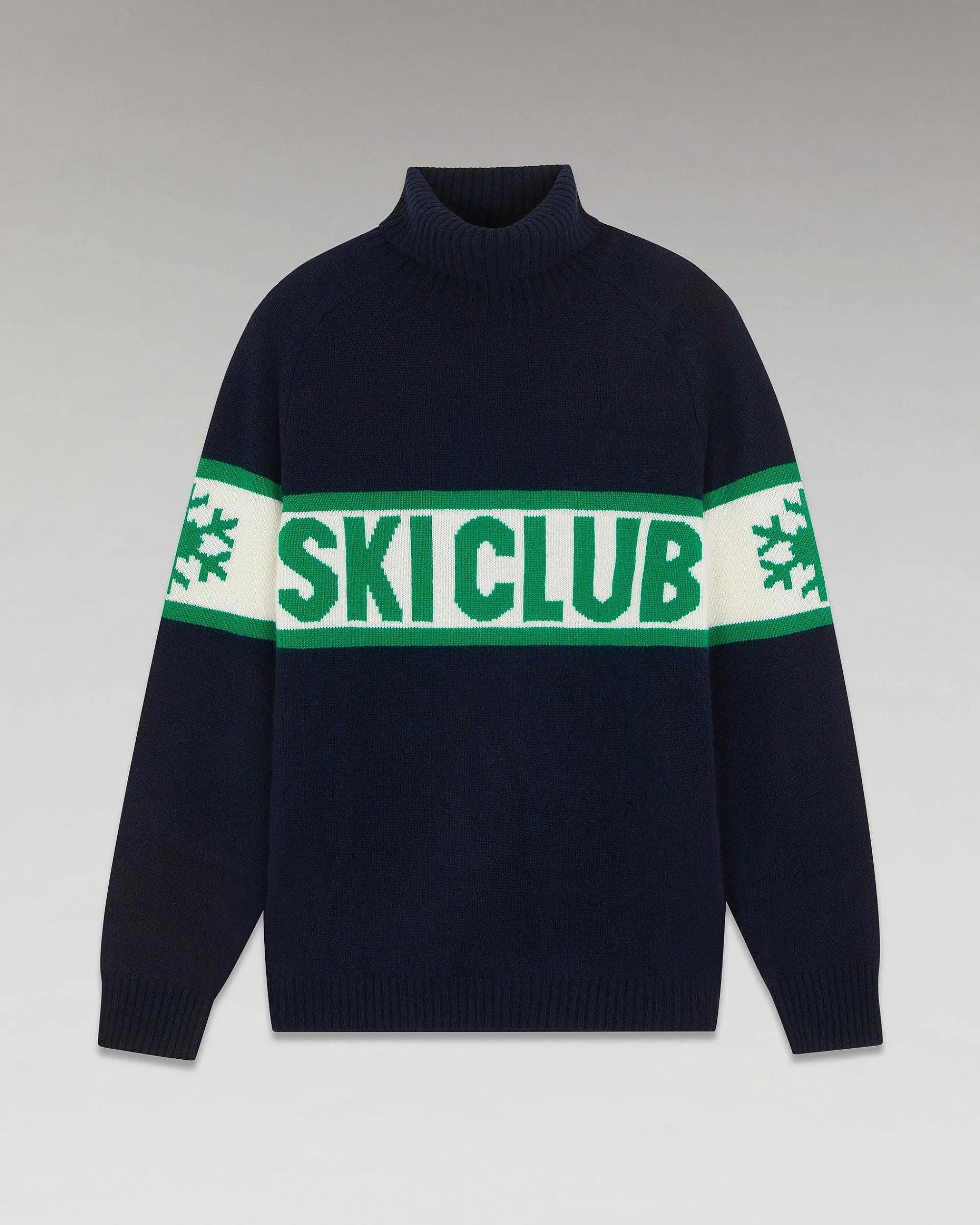 Révélez Votre Allure Cosmique Sur Les Pistes Enneigées ! Confectionné En Cachemire 4 Fils, Ce Pull Oversize Dévoile Un Col Roulé, Des Manches Longues Et Des Bords Côtelés. Infiniment Doux, Il Révèle Des Bandes Constrastées Ornées D’Un Message « Ski Club » Et De Flocons De Neige. Facile À Mixer, Complétez Votre Look Avec Un Pantalon Décontracté Et Un Bonnet Côtelé.