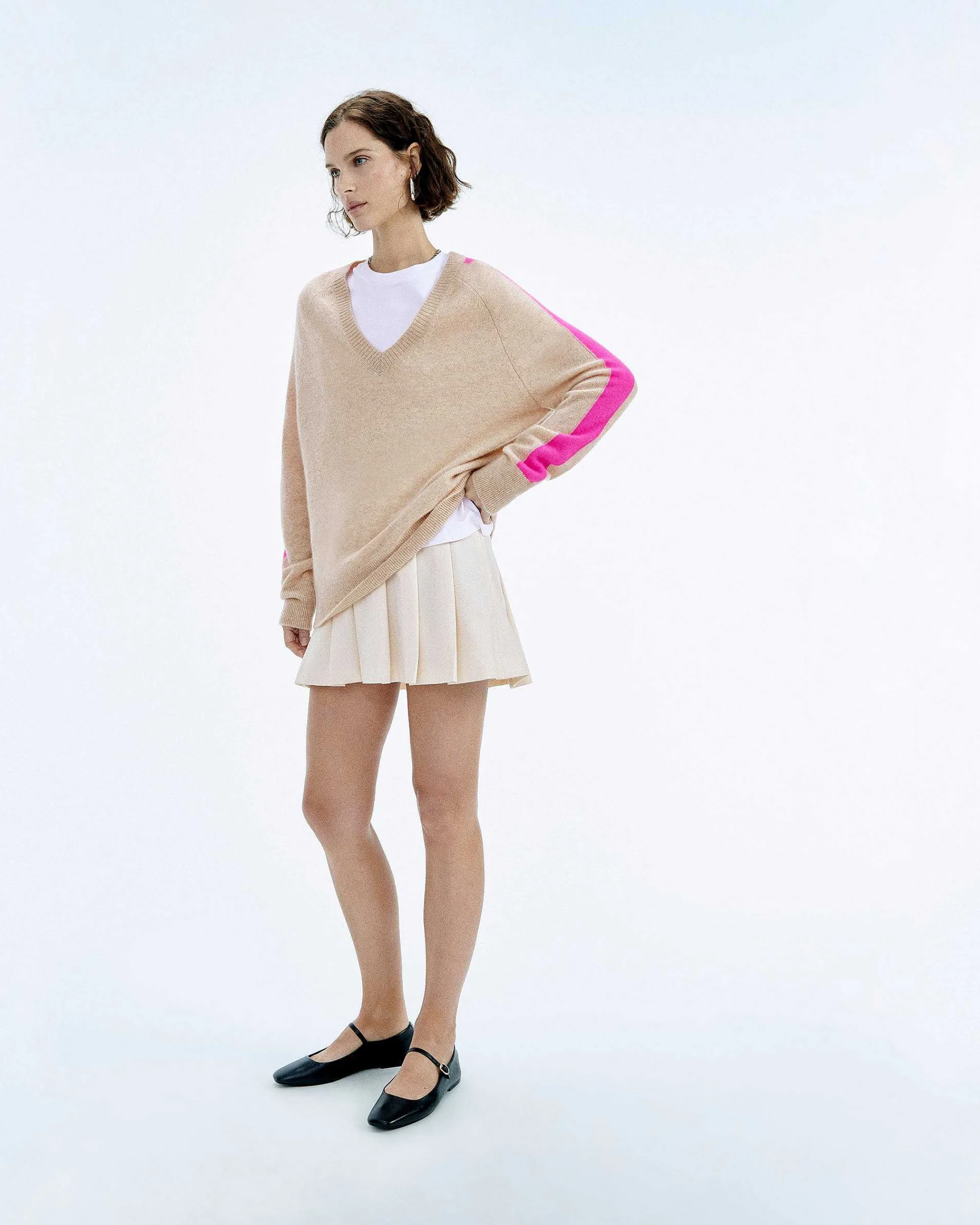 Confectionné En Cachemire Léger 2 Fils, Ce Pull Long Et Oversize Vous Propulse Vers Des Horizons Stylistiques Inexplorés. Muni De Bords Côtelés, Un Col V Et Des Bandes Contrastées Le Long Des Manches Viennent Sublimer Votre Allure. À La Fois Chic Et Casual, Complétez Votre Look Futuriste Avec Un Jean Structuré Ou Un Pantalon Ample.