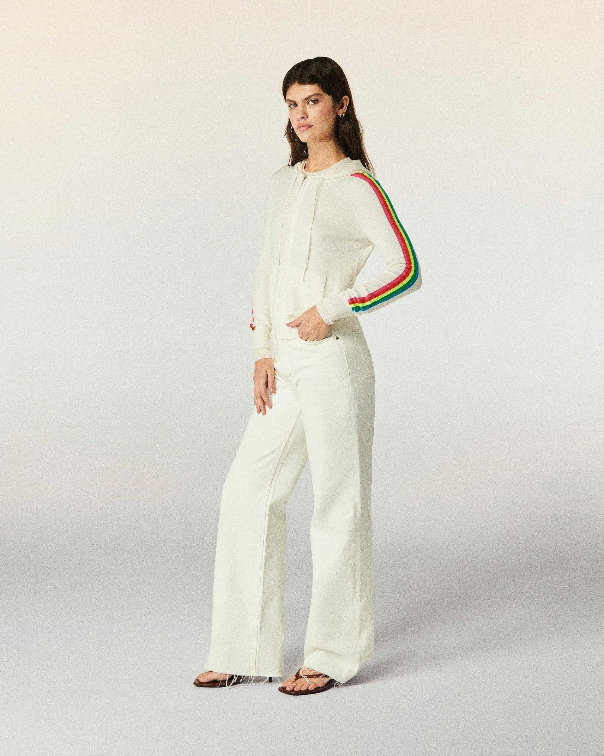 Une Maille Moelleuse Et Aérée Se Dévoile Sur Ce Pull Hoodie Court Et Confectionné En Laine Mérinos. Muni D’Une Capuche, D’Une Fermeture Zippée Et De Bords Côtelés, Des Bandes Multicolores S’Invitent Le Long Des Manches, Signatures De L’Allure From Future. Complétez Votre Look Avec Un Jean Ample Ou Un Pantalon Droit.