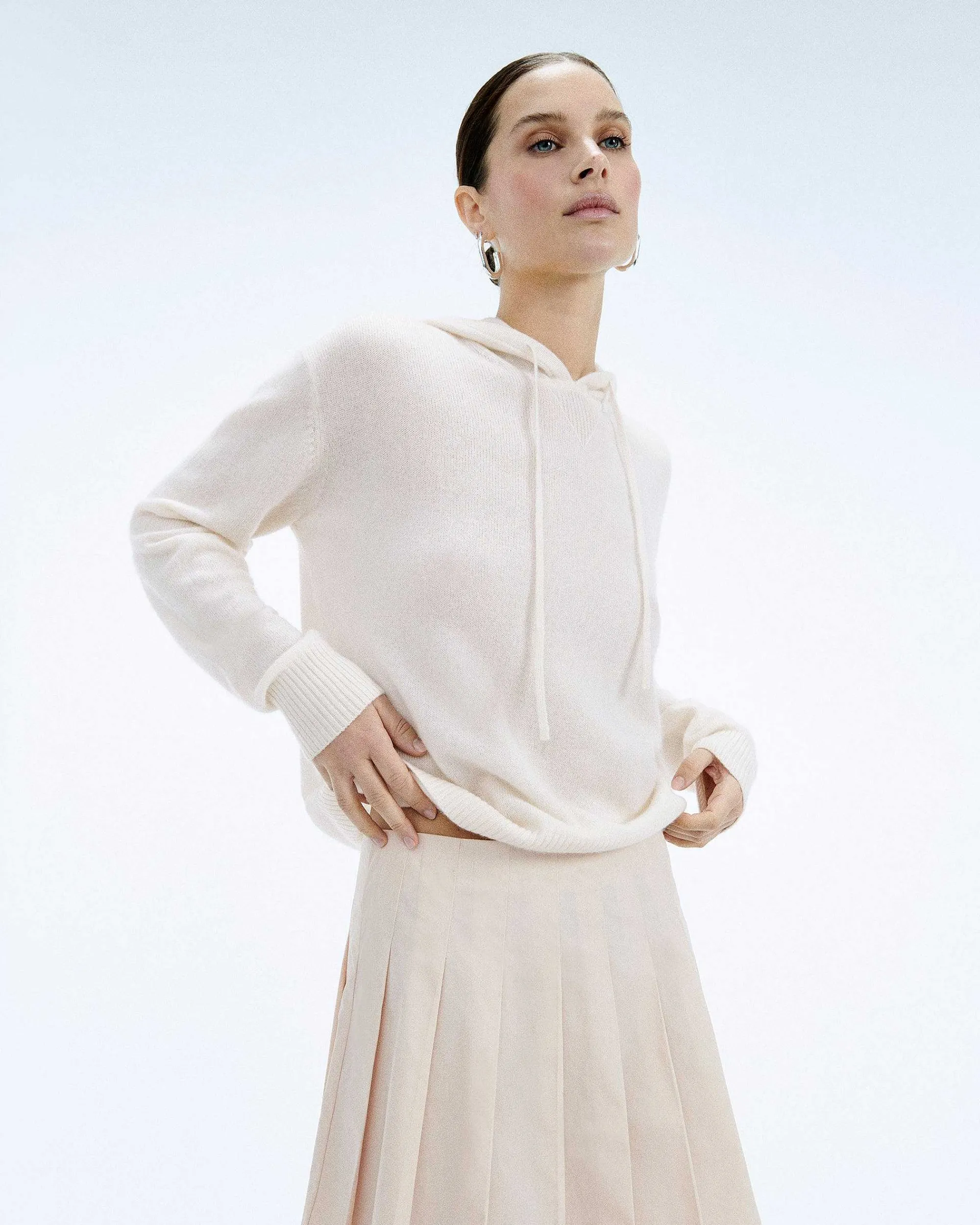 – Pull Hoodie En Cachemire 2 Fils Femme