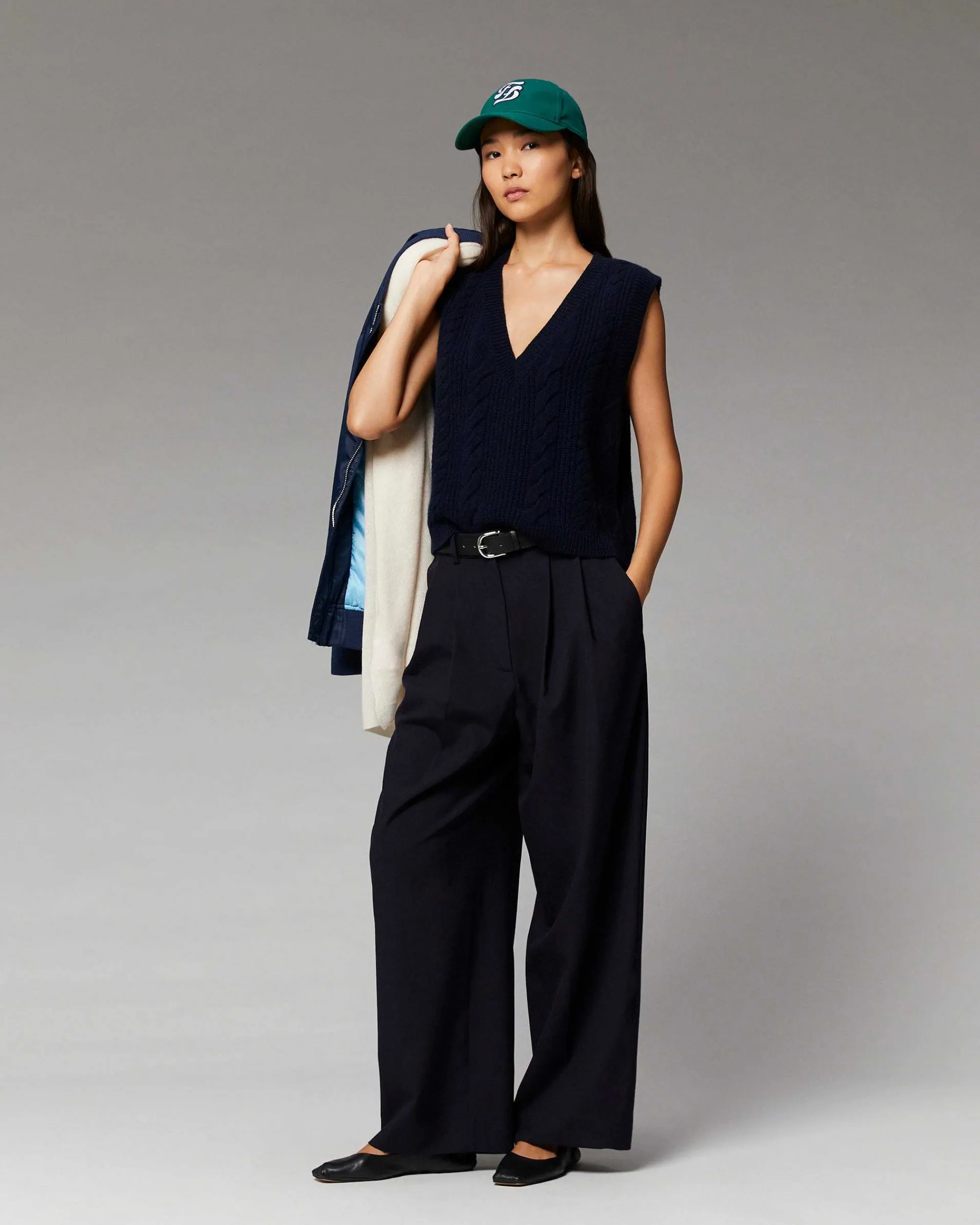 Confectionné En Cachemire 6 Fils, Ce Pull Sans Manches Infiniment Doux S’Impose Comme Un Incontournable De La Saison. Court Et Oversize, Il Dévoile Un Col Rond Et Un Jeu De Torsades Qui Capturent L’Élégance Intemporelle, Vous Invitant À Embrasser Un Style Qui Transcende Les Époques. À Porter Seul Ou Sur Une Chemise, Agrémentez Votre Silhouette Avec Un Pantalon Fluide Pour Une Allure Élégante Et Casual.