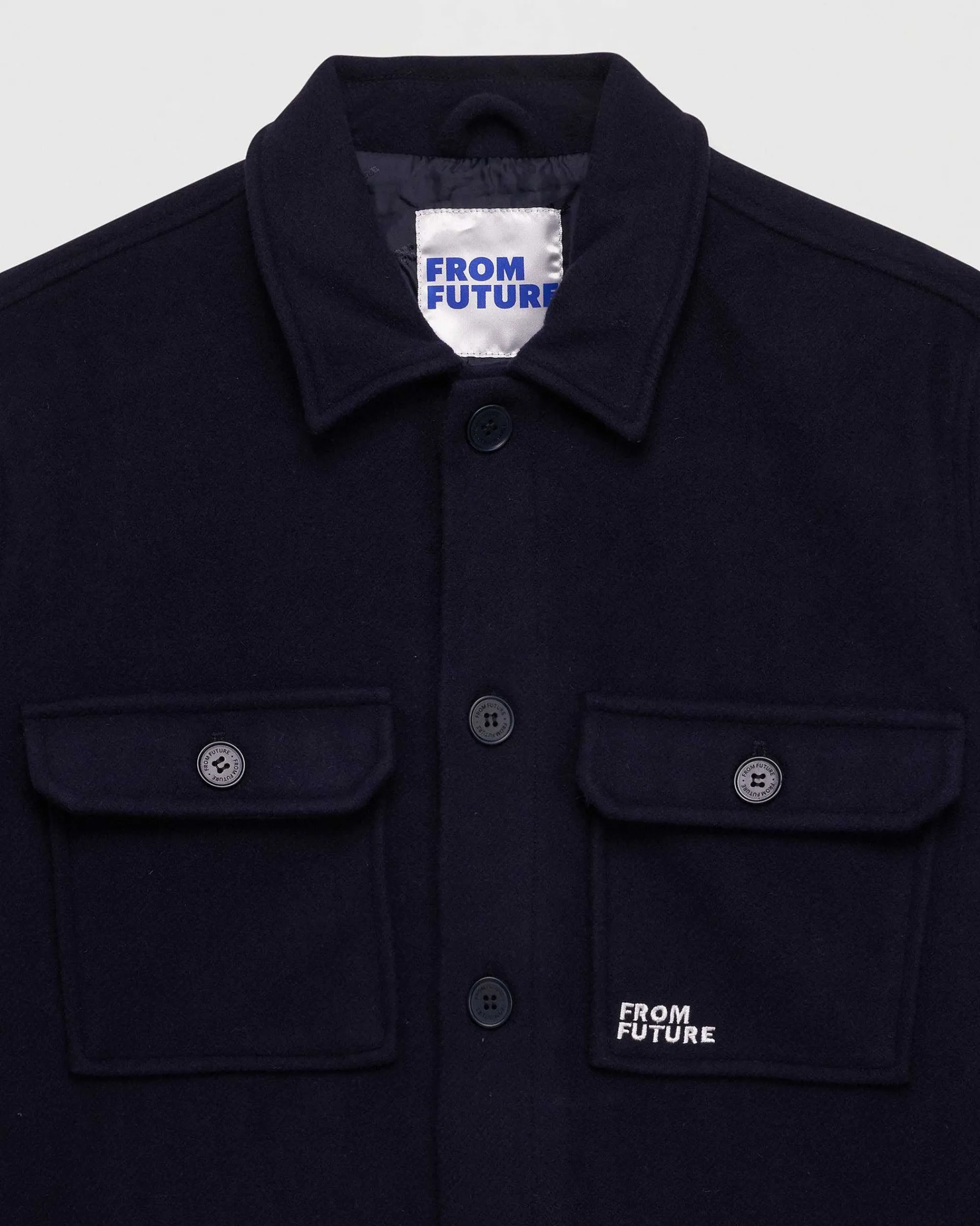 Un Indispensable Du Vestiaire Masculin : Cette Surchemise En Laine Munie De Poches Et De Manches Longues Dévoile Une Broderie « From Future » Sur La Poitrine.