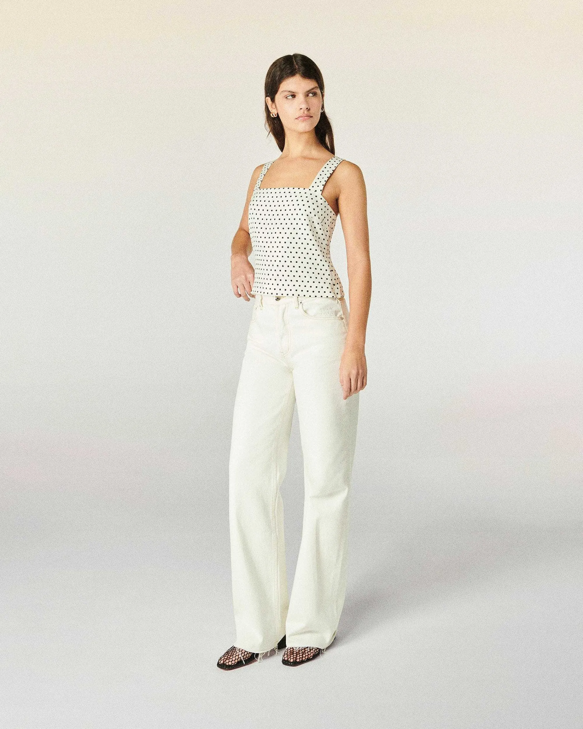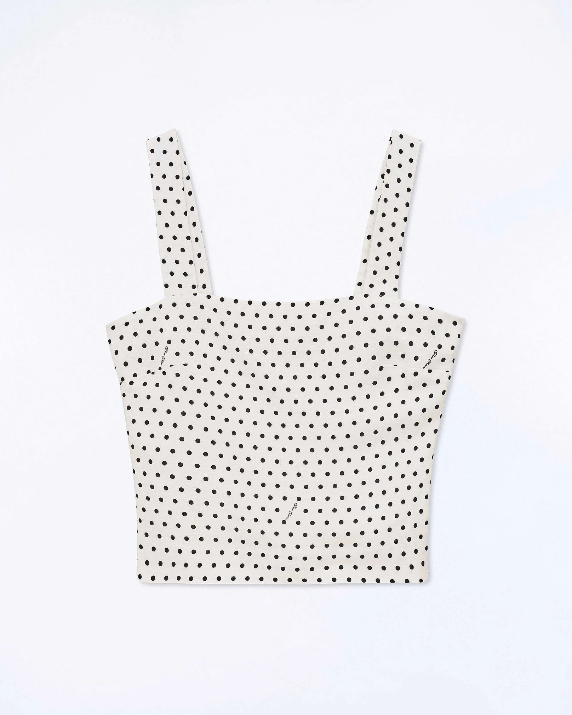 Telle Une Constellation Céleste, Un Imprimé Pois S’Invite Sur Ce Top Élégant Et Audacieux. Muni De Bretelles Larges Et D’Un Décolleté Droit, Il Structure Votre Silhouette Futuriste Et Se Mixe Aisément À Un Jean Droit Ou Une Jupe Fluide.
