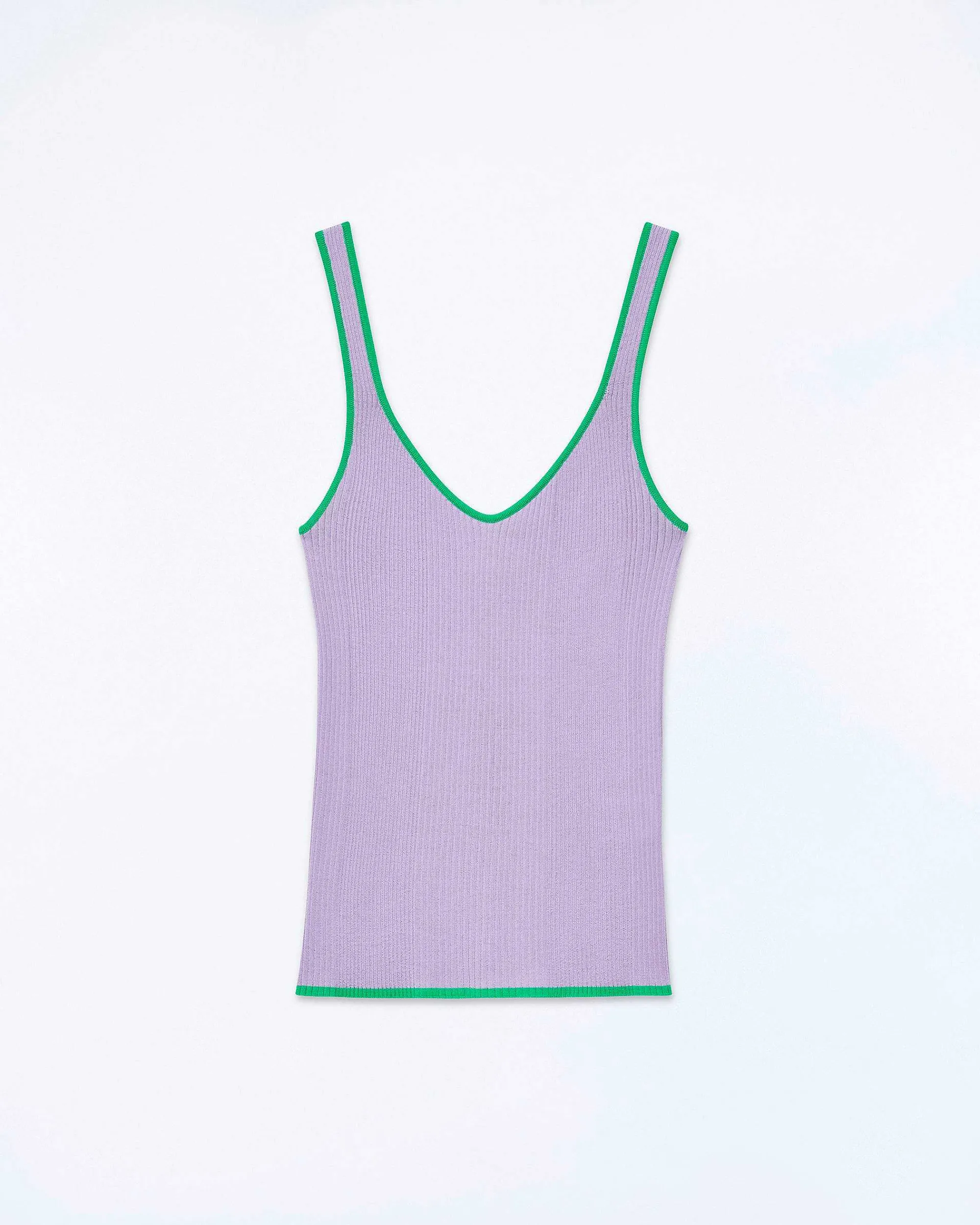 Allure Vibrante Pour Ce Top Débardeur Court Et Côtelé, Confectionné En Laine Mérinos. Muni De Bretelles Fines, Il Affiche Un Décolleté En V Et Des Bords Contrastés Pour Créer Une Silhouette Structurée. À Porter Sans Effort, Il S’Associe À Une Jupe Fluide Ou Un Pantalon Ample.